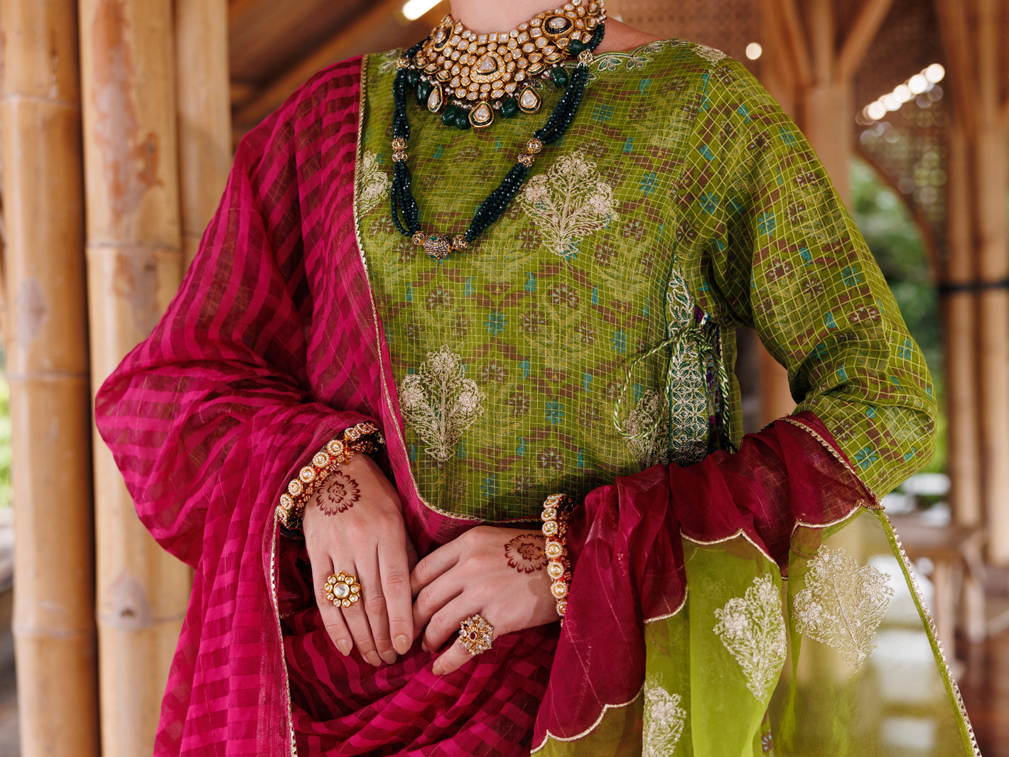 GREEN MAPLE SILK 3PC STITCHED | ALP-3PS-2026/S FB-20