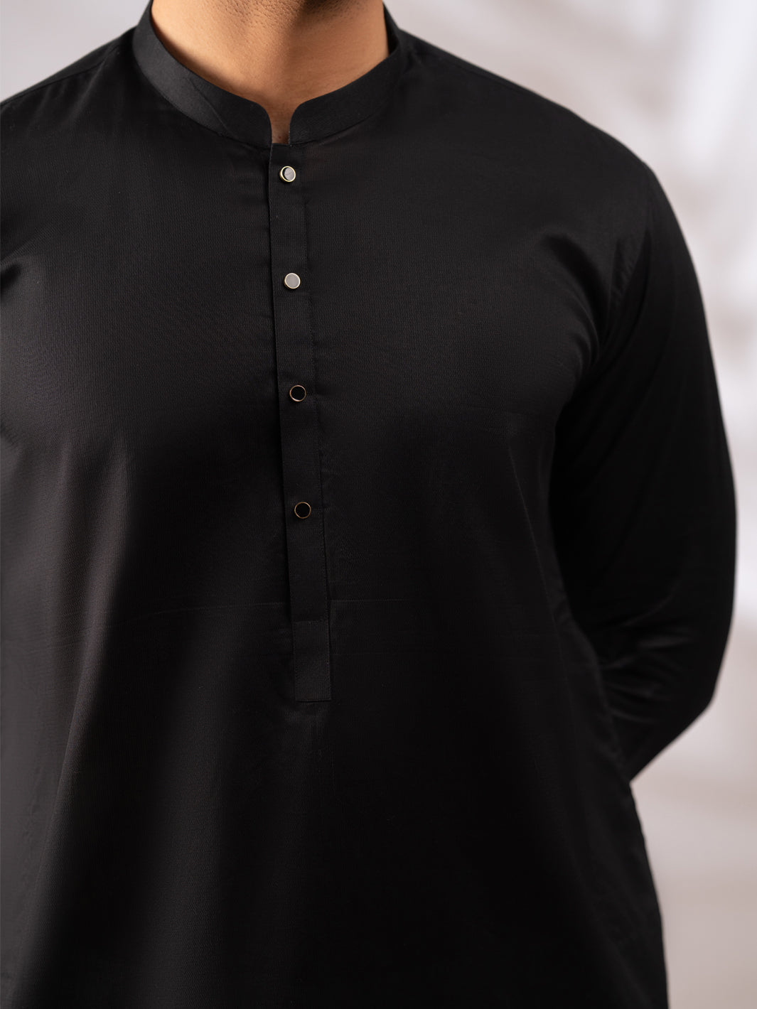 Black Kurta With Metallic Snap Buttons