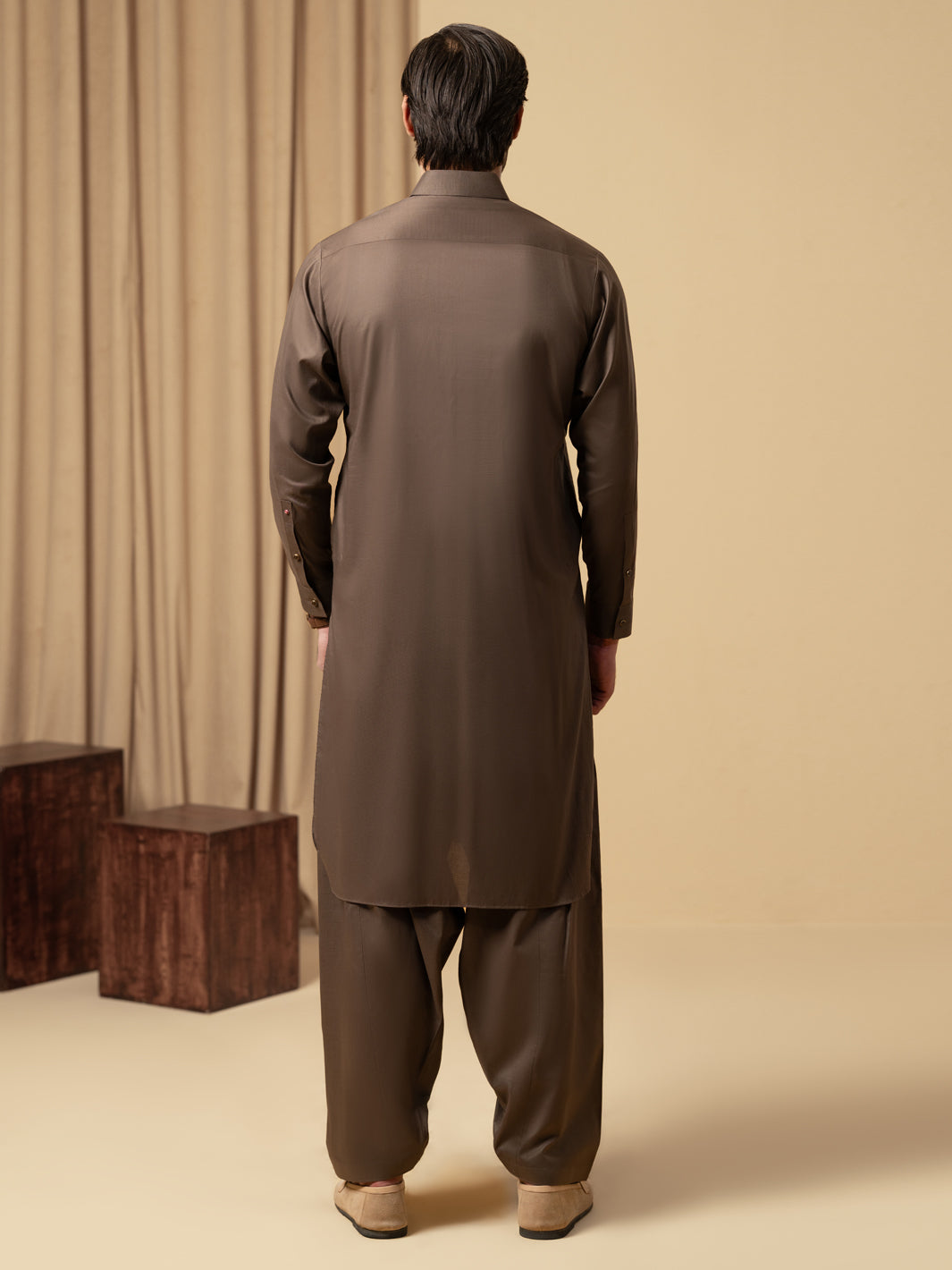 Brown Kameez Shalwar With Stylized Collar and Cuffs