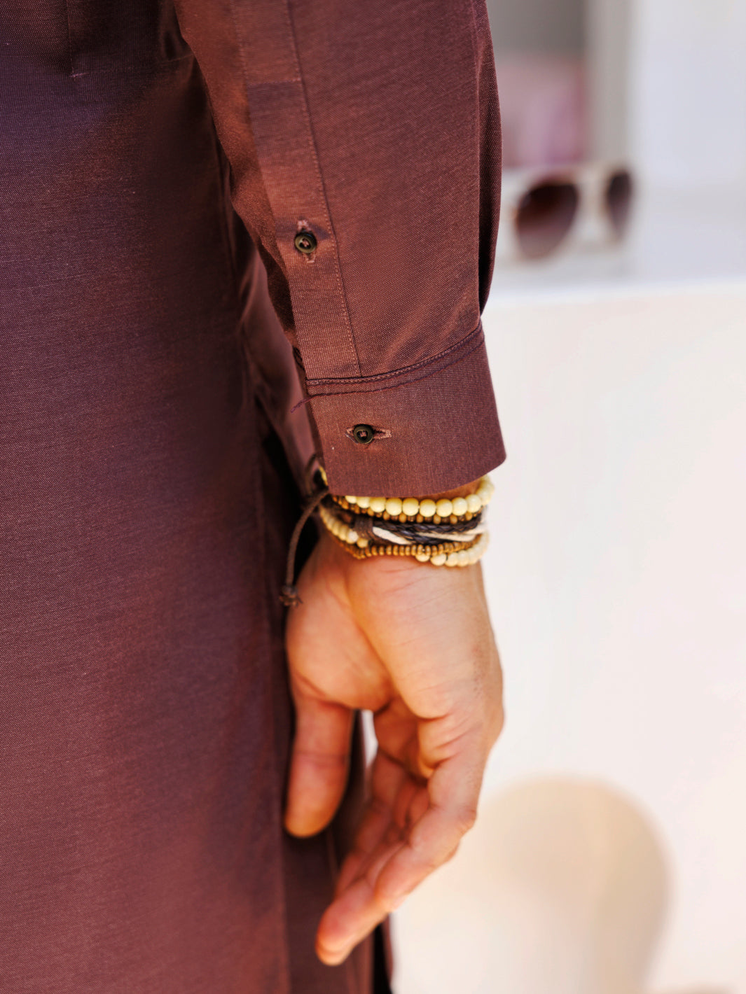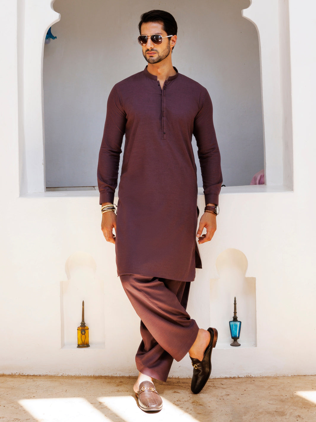 Purple Kameez Shalwar Featuring Exclusively Tailored Double Placket Detailed With Contrast and Rivets