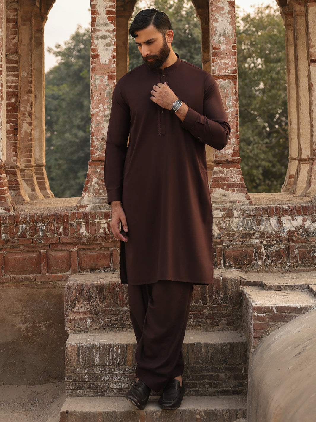 BROWN BLENDED KAMEEZ SHALWAR | AL-KS-3303/AM-6338C