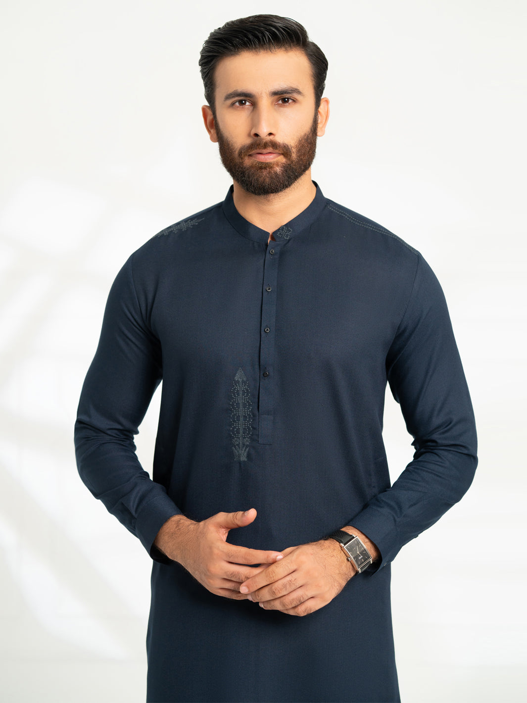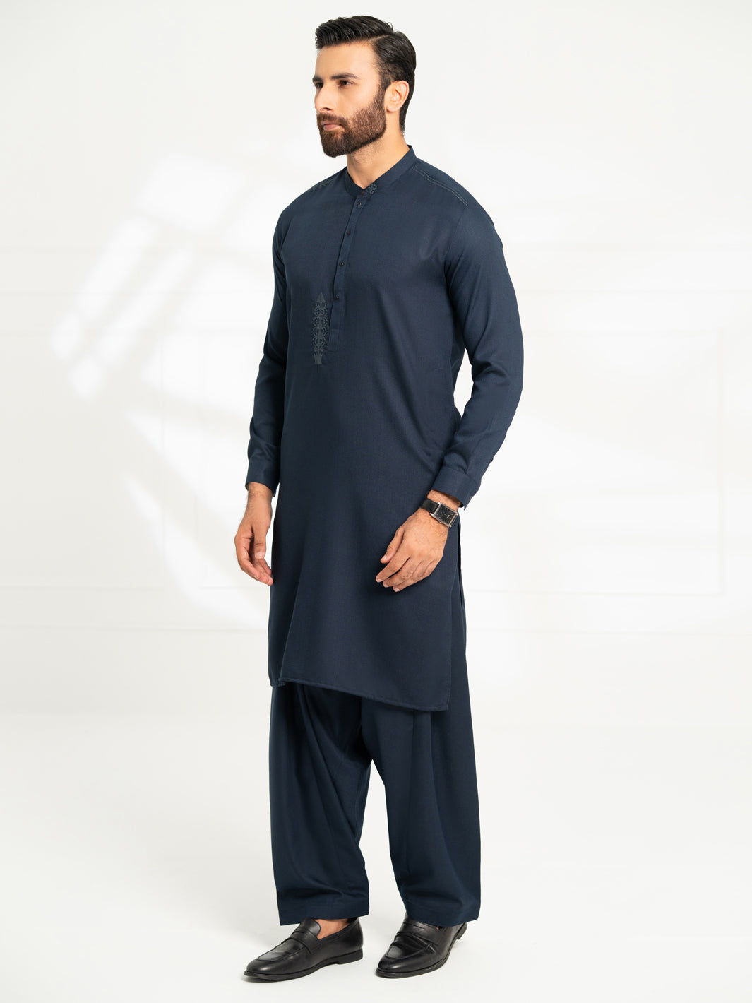NAVY BLUE BLENDED KAMEEZ SHALWAR | AL-KS-3316/AM-15068B