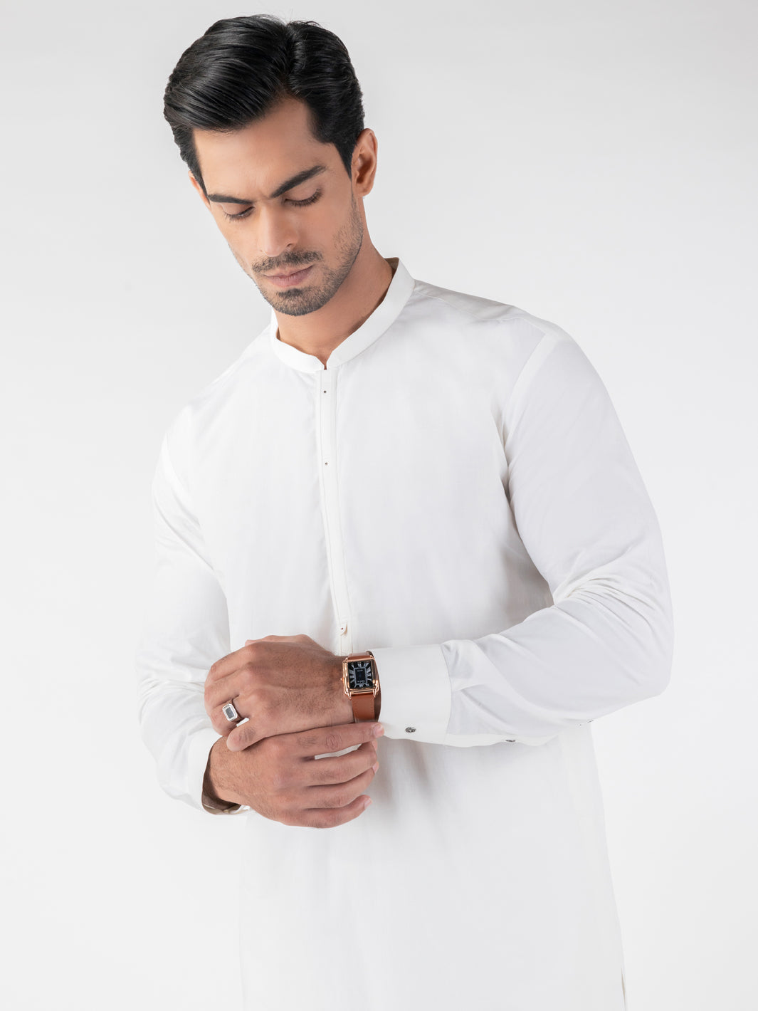 Smart fit kurta trouser set featuring finely tailored cut and sew detailed with rivets
