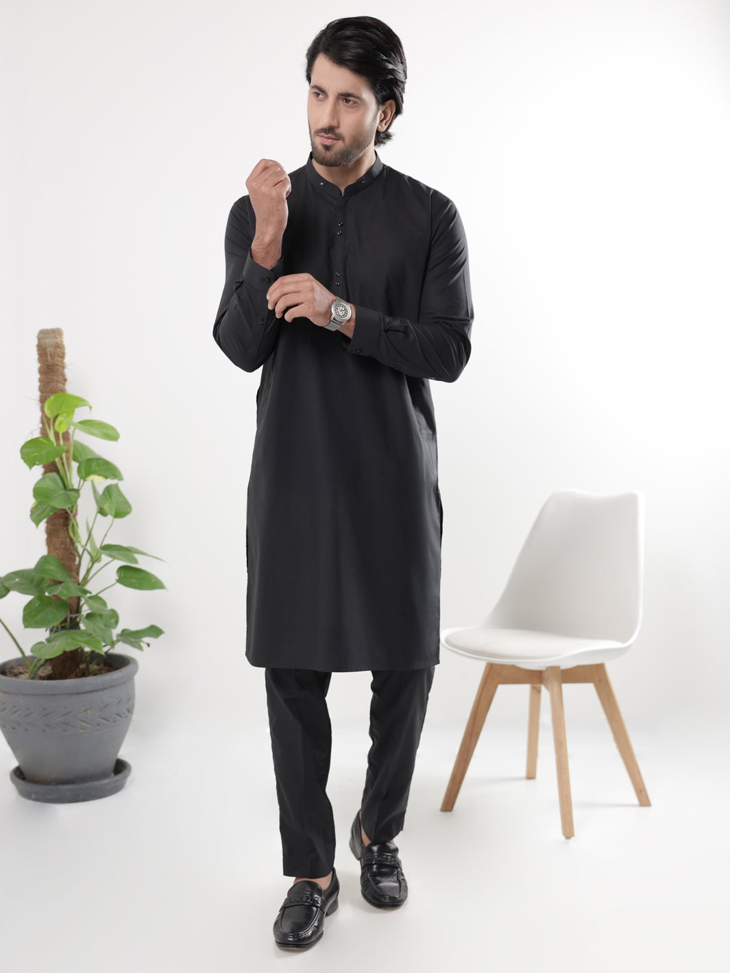BLACK COTTON KURTA TROUSERS | AL-KT-3221/AM-6332C