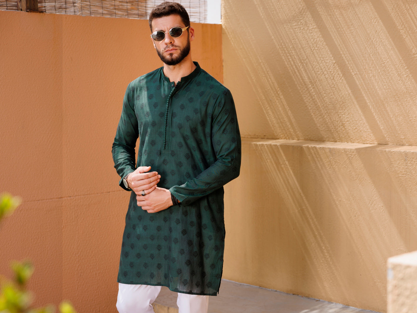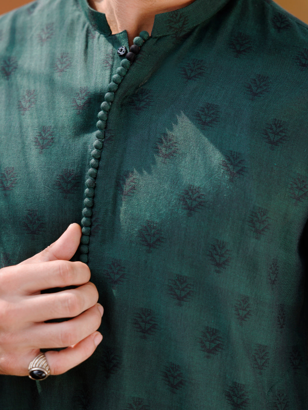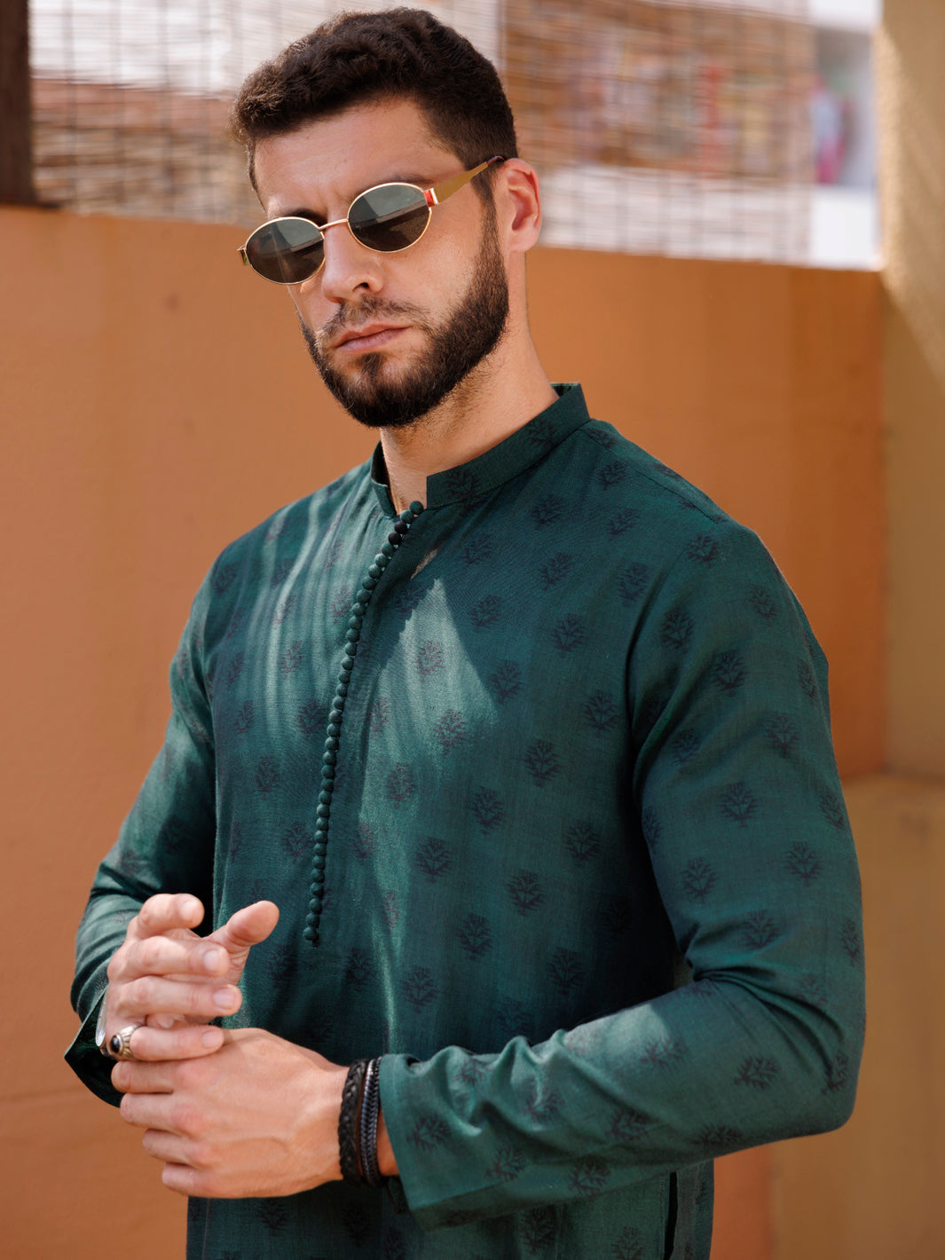GREEN COTTON KURTA | AL-K-1234/AM-6324D