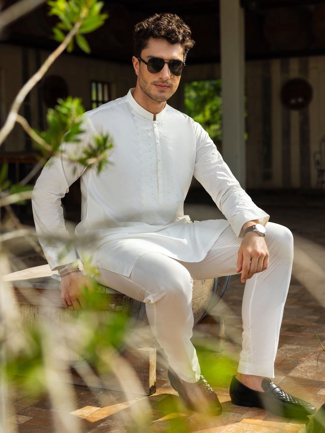 Semi Formal Kurta Trouser With Embroidery Details Around the Placket and Sleeves