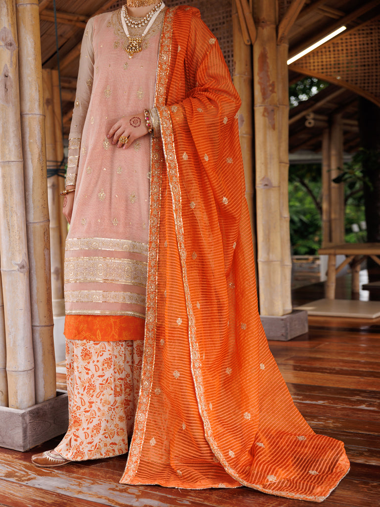 ORANGE YARN DYED 3PC UNSTITCHED | AWP-3PS-651 FB-651A