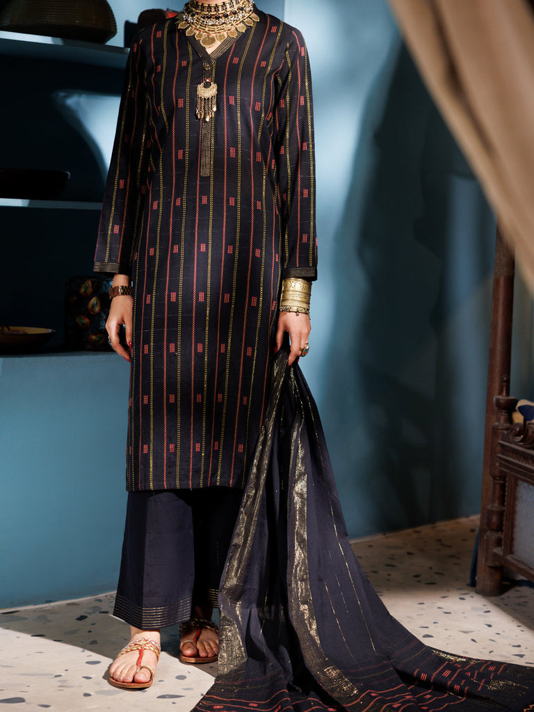 BLACK YARN DYED 3PC UNSTITCHED | ALP-3PS-1891 ALR-109A
