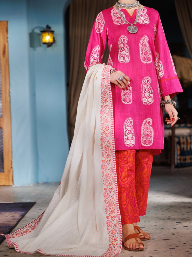 PINK COTTON DOBBY 3PC UNSTITCHED | ALP-3PS-1920 FB-1920A