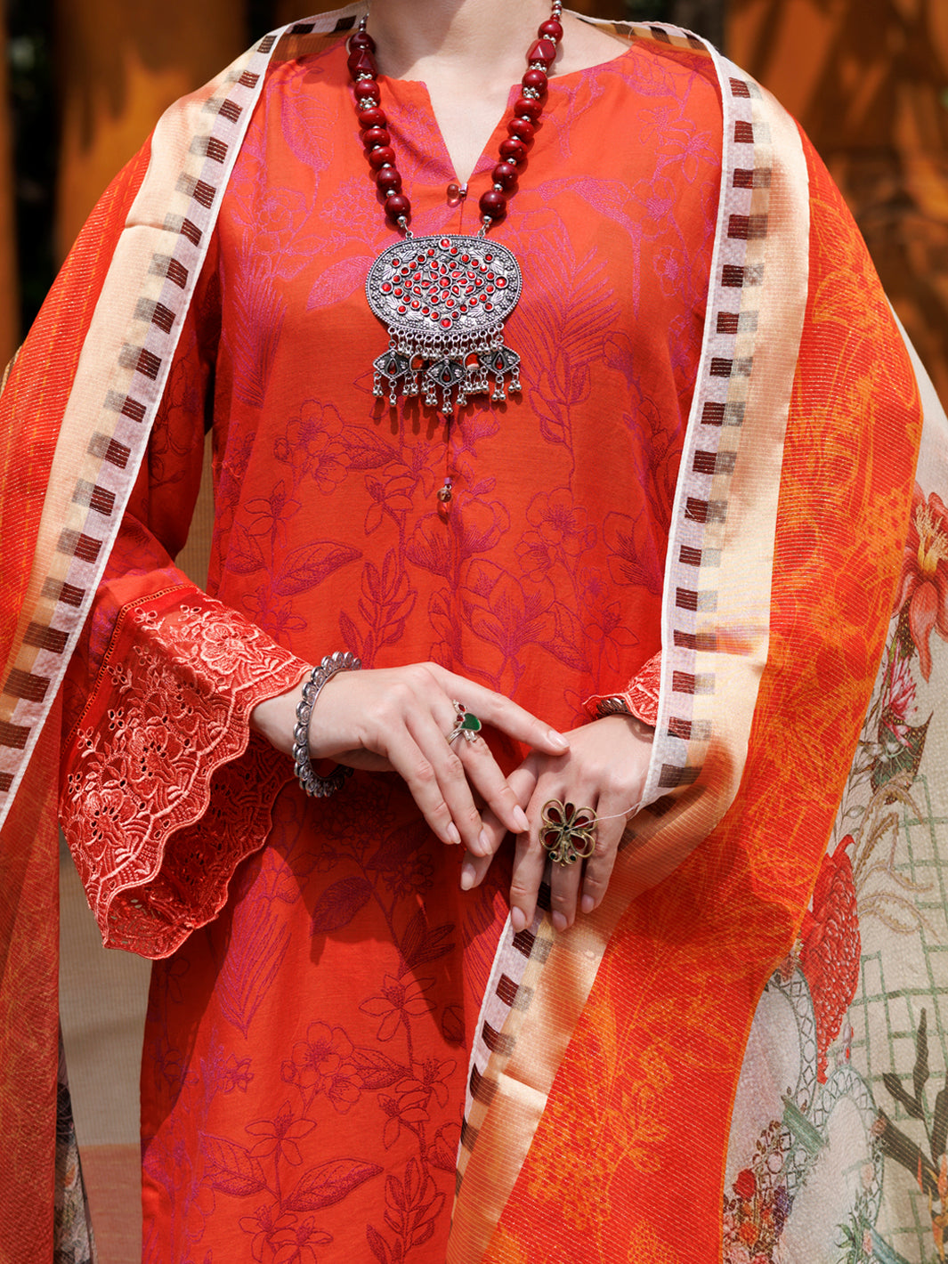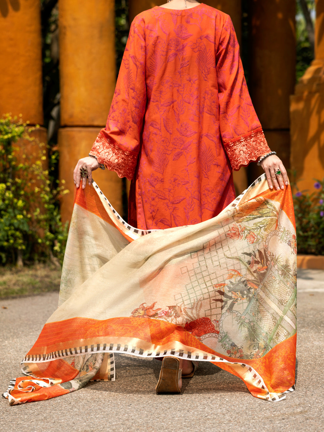 ORANGE JACQUARD 3PC UNSTITCHED | ALP-3PS-2014 FB-2014