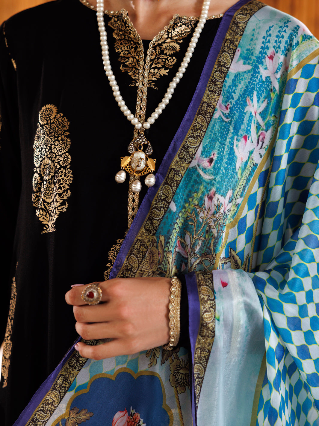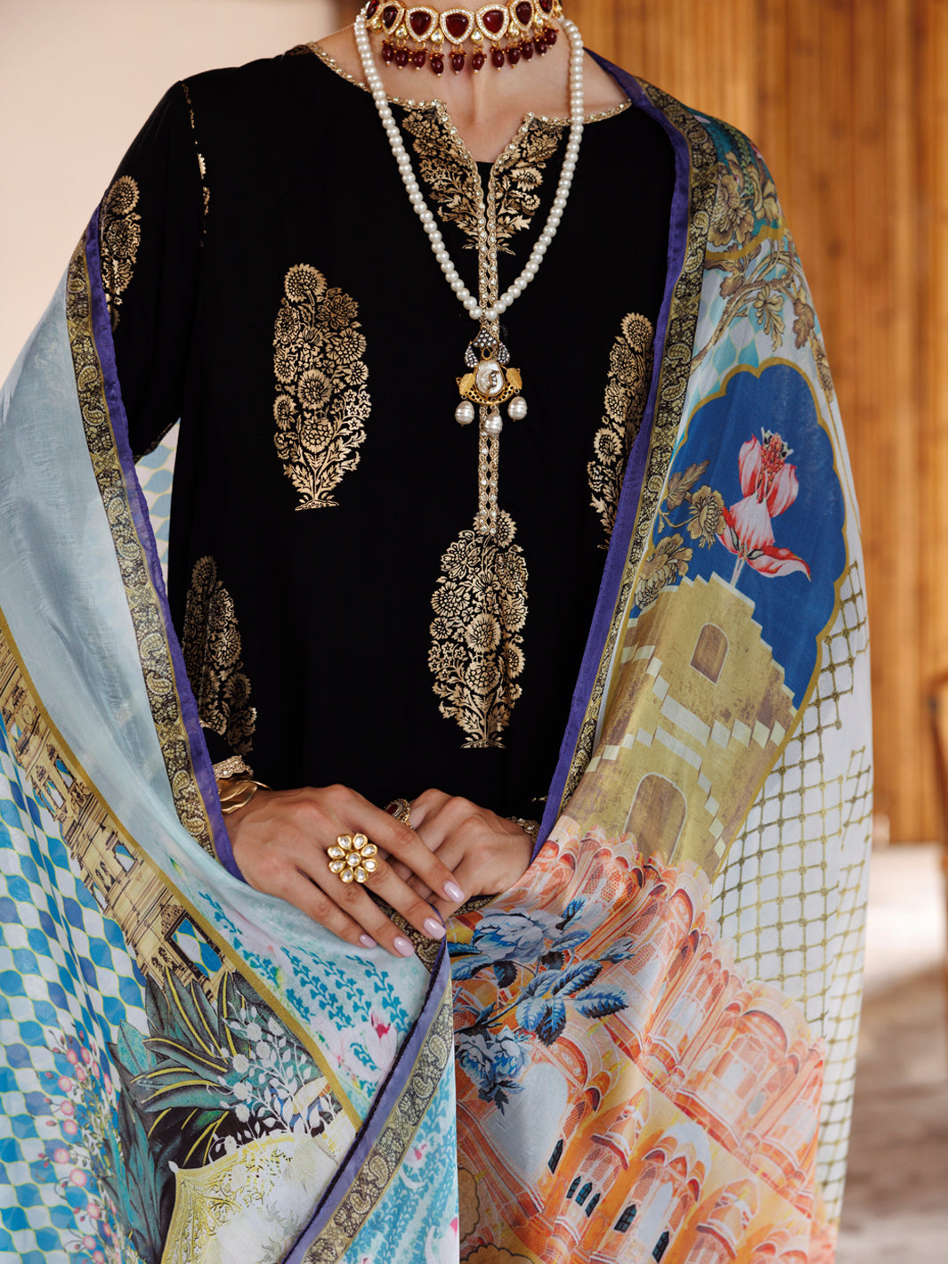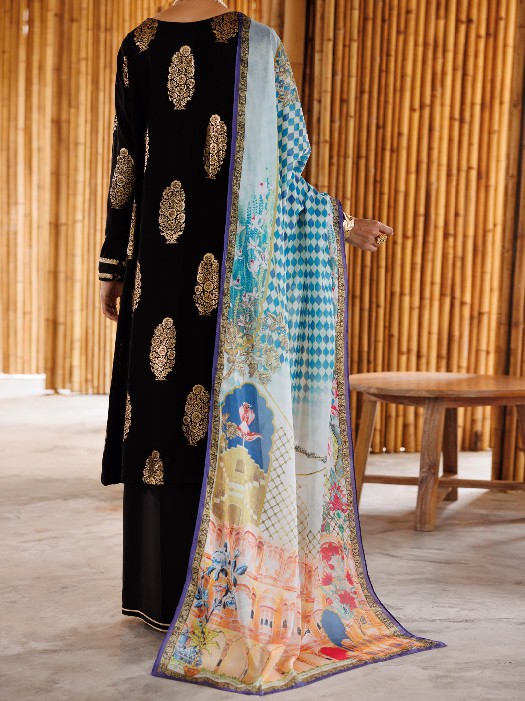 BLACK VISCOSE 3PC UNSTITCHED | ALP-3PS-2040 FB-2040