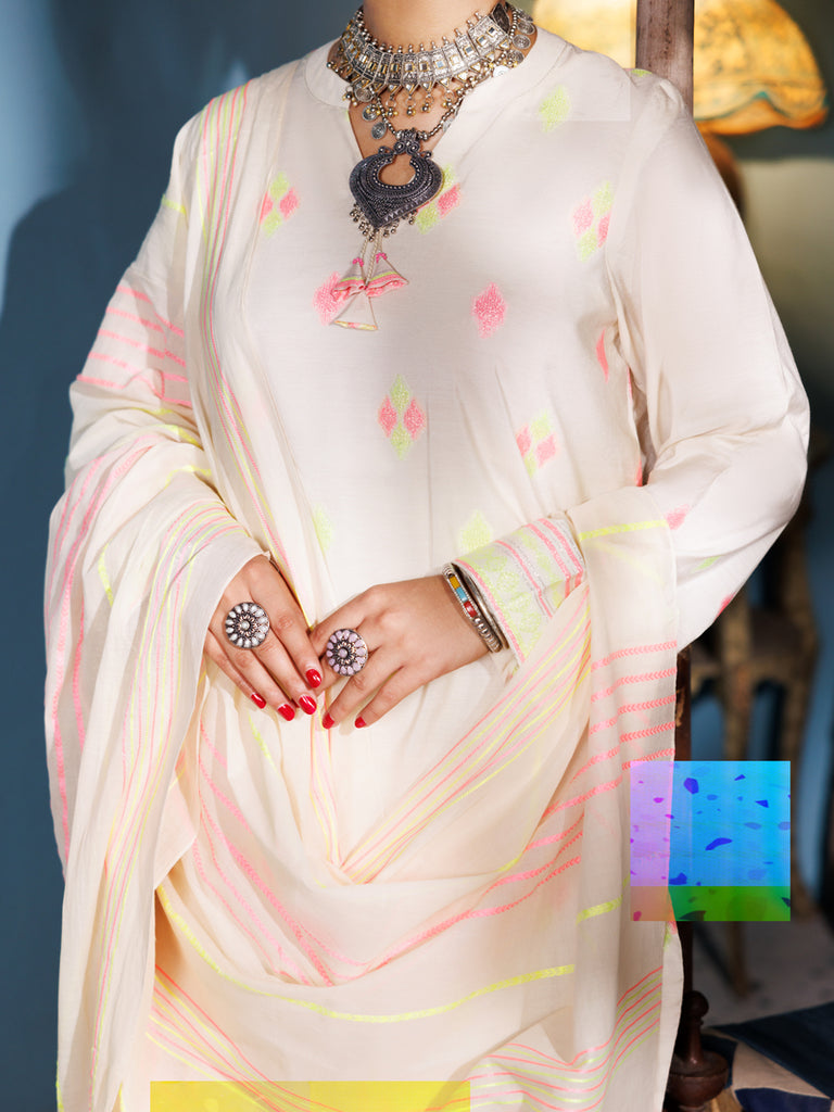 OFF WHITE JACQUARD 3PC UNSTITCHED | ALP-3PS-1886 FB-1886A