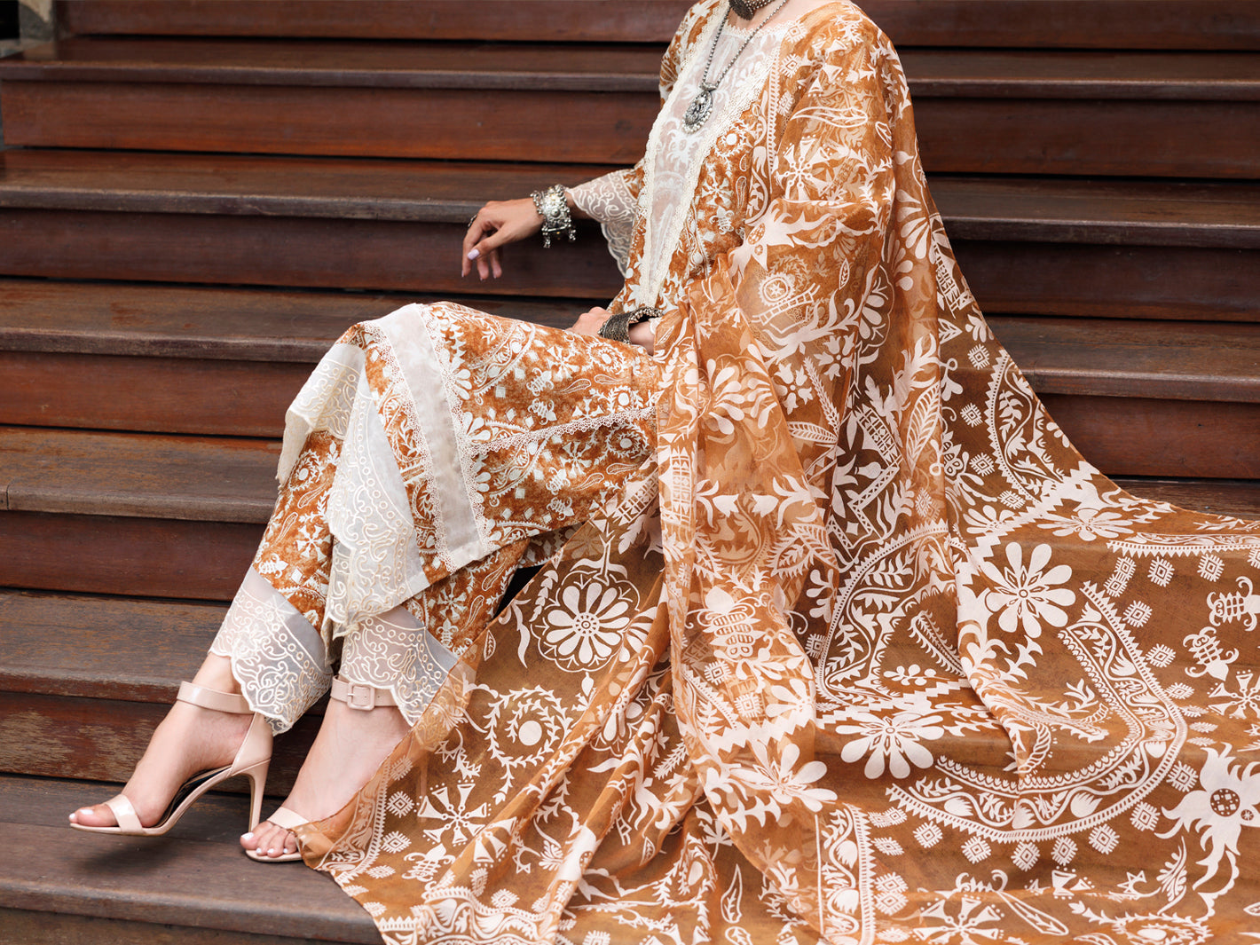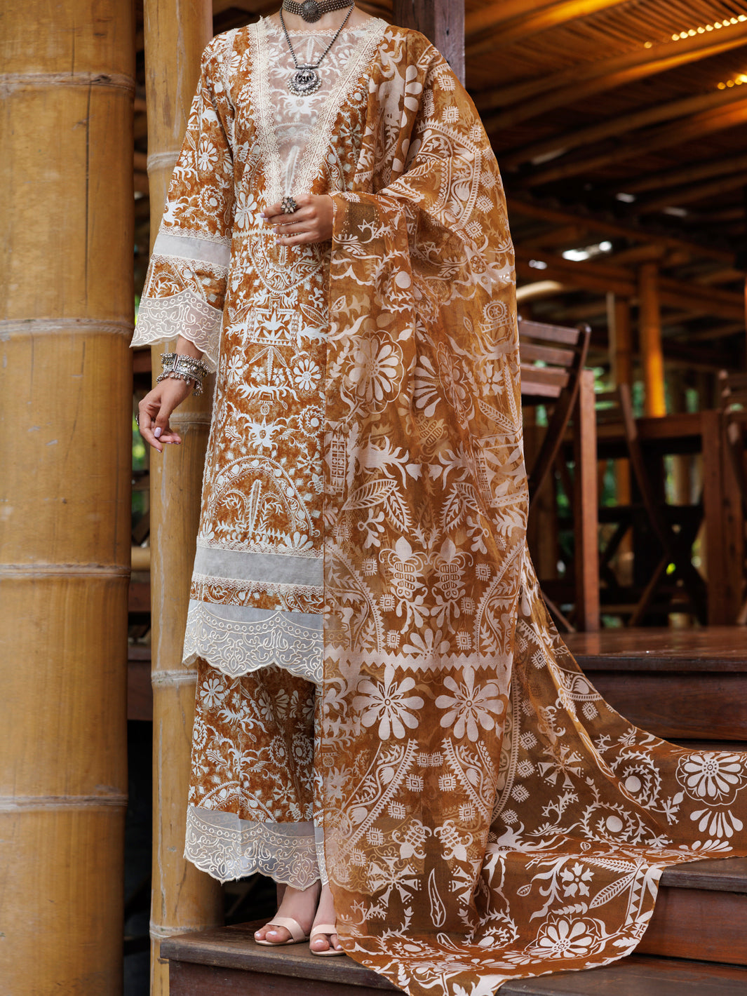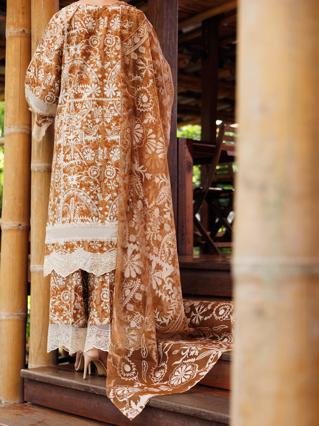 LIGHT BROWN CAMBRIC 3PC UNSTITCHED | ALP-3PS-1988 FB-1988A