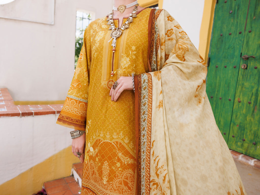 MUSTARD LAWN 3PC UNSTITCHED | ALP-3PS-2001 FB-2001A
