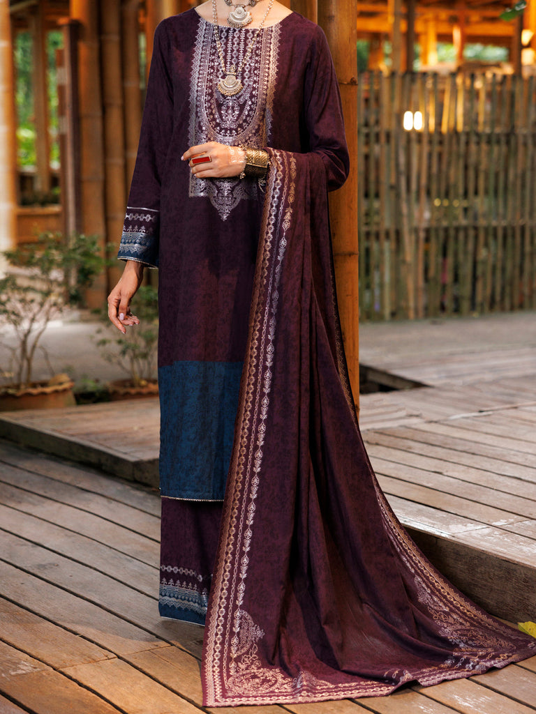 PURPLE YARN DYED JACQUARD 3PC UNSTITCHED | ALP-3PS-2024 FB-2024A