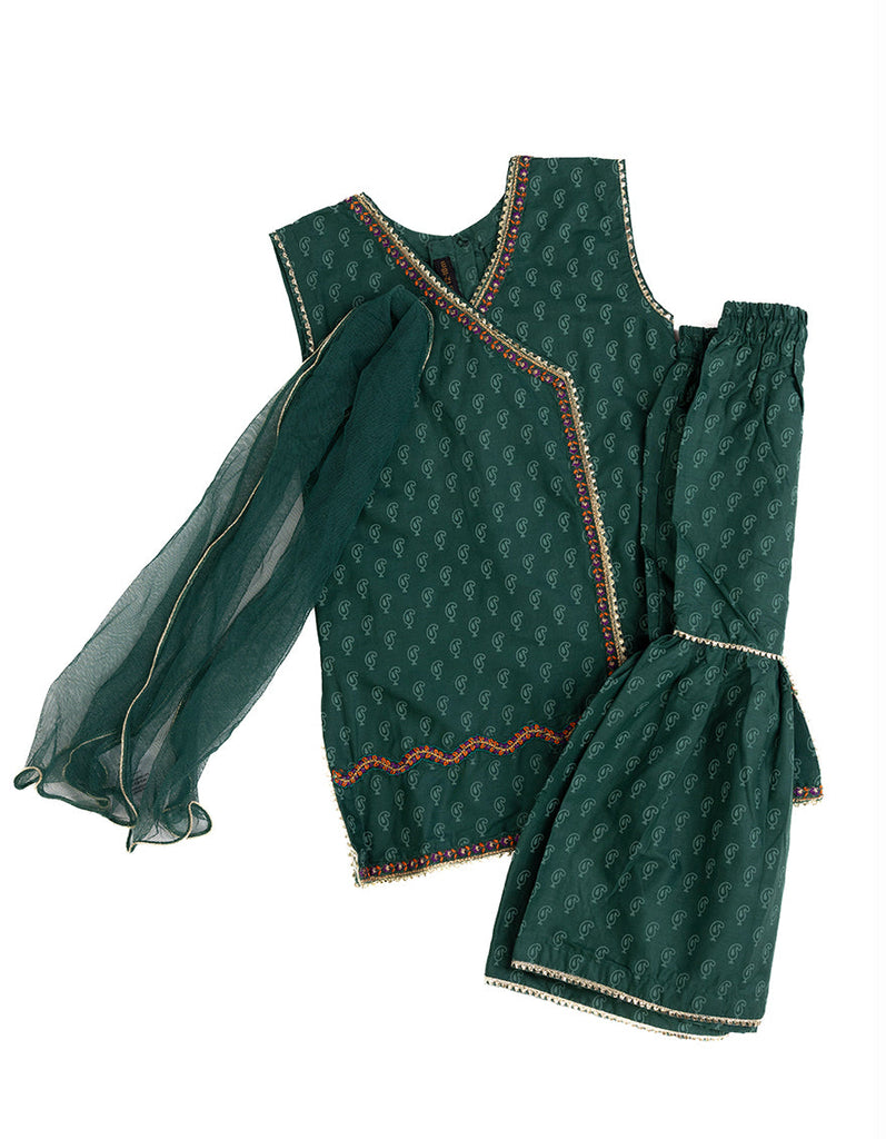 GREEN KHADDI 3PC STITCHED | JGK-W-24-1951 FB/IRI