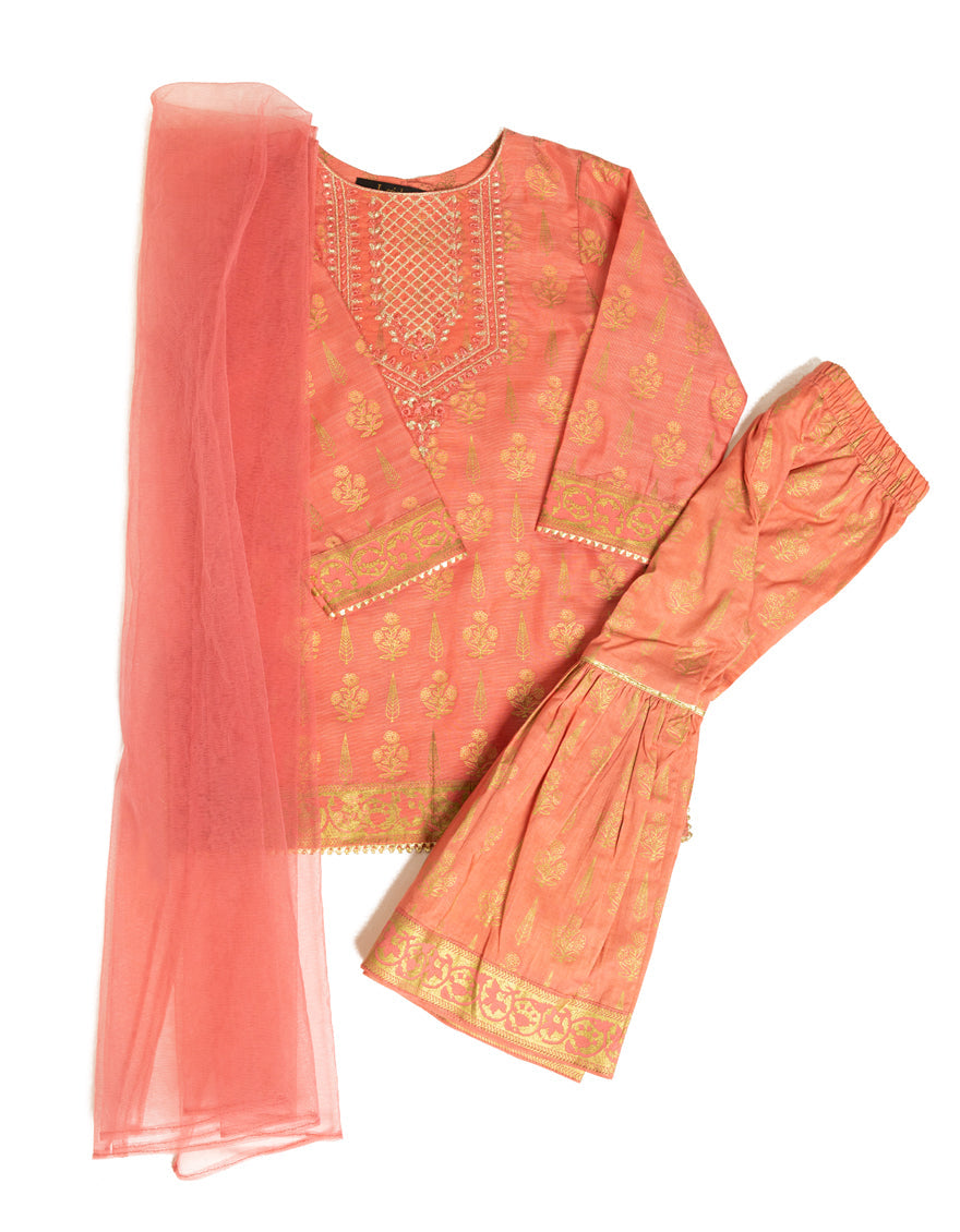PEACH COTTON SILK 3PC STITCHED | JGK-S-JIF-25-1712 FB/IRIS-12