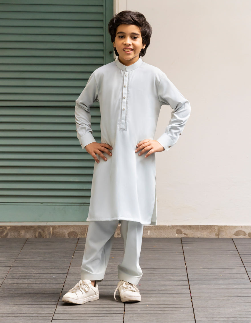 Made for the modern young man, this Dull Sky Blended Kameez Shalwar shalwar is a perfect blend of style and comfort. Its simple yet elegant design makes it suitable for a range of occasions, ensuring that your little one looks his best.