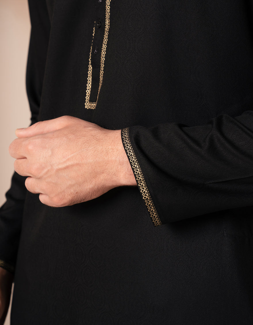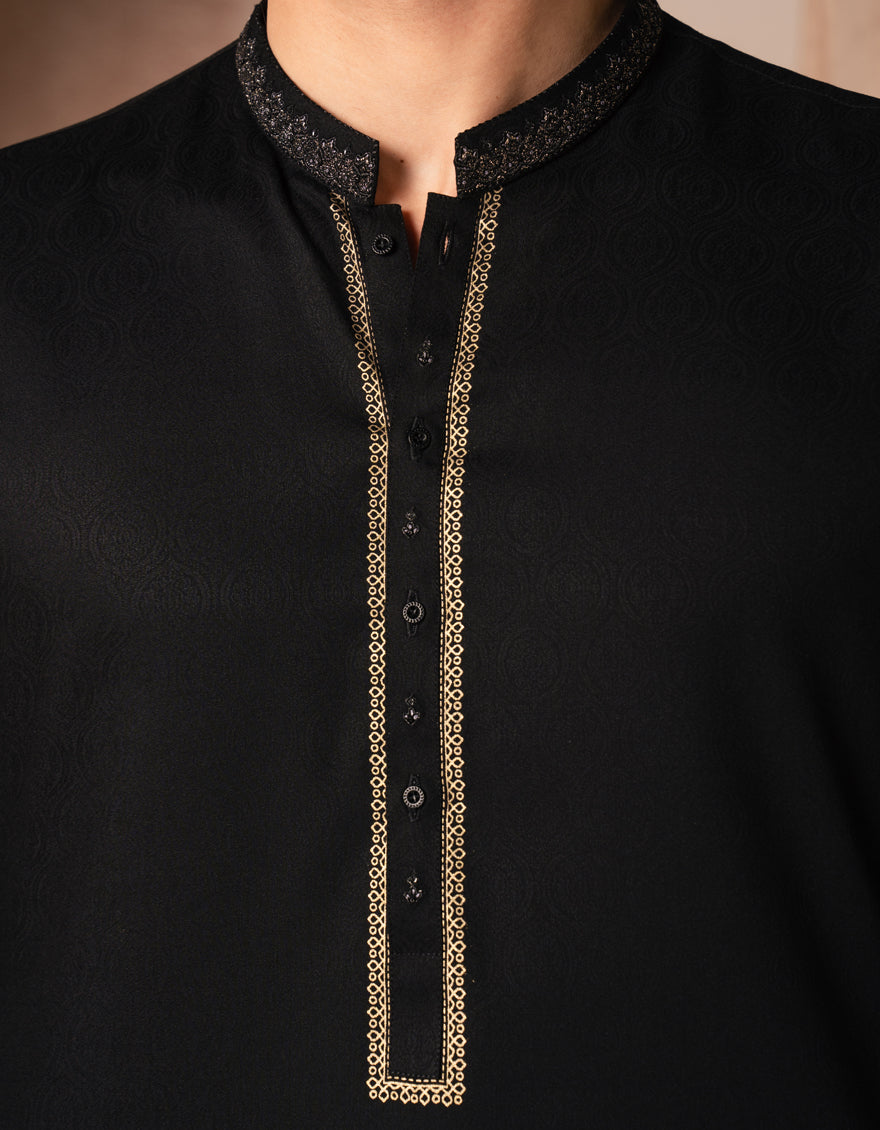 This black blended formal kurta blends traditional style with a modern look. Made with care and clean design, it's a great choice for weddings, events, or festive wear.