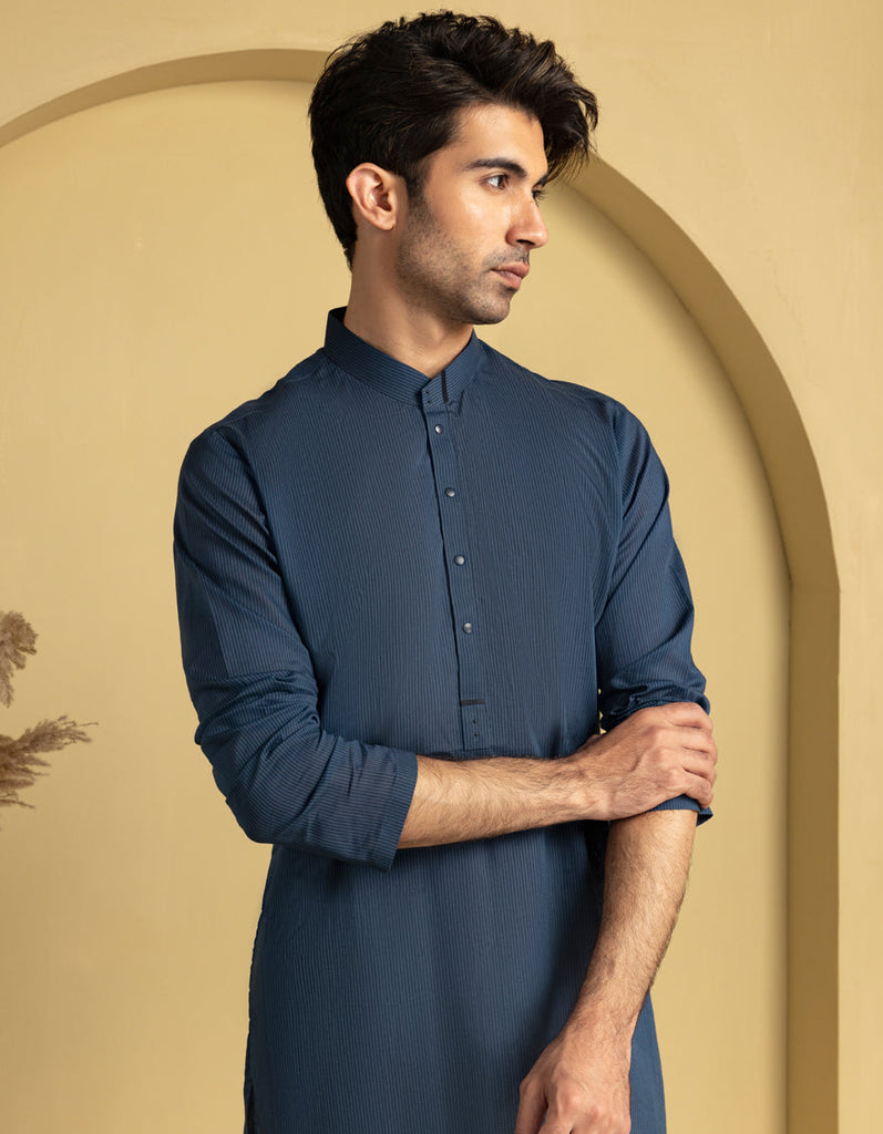 Simple yet stylish, this Blue Cvc Casual Kurta offers timeless elegance and versatility, perfect for a range of occasions and settings.