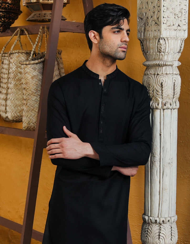 BLACK COTTON KURTA | JJK-S-46665/S25/JJ92