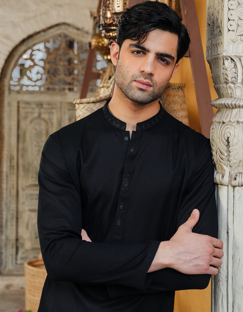 Upgrade your look with this Black Cotton Semi-Formal Kurta, which mixes traditional and modern styles for a classy yet comfortable outfit.