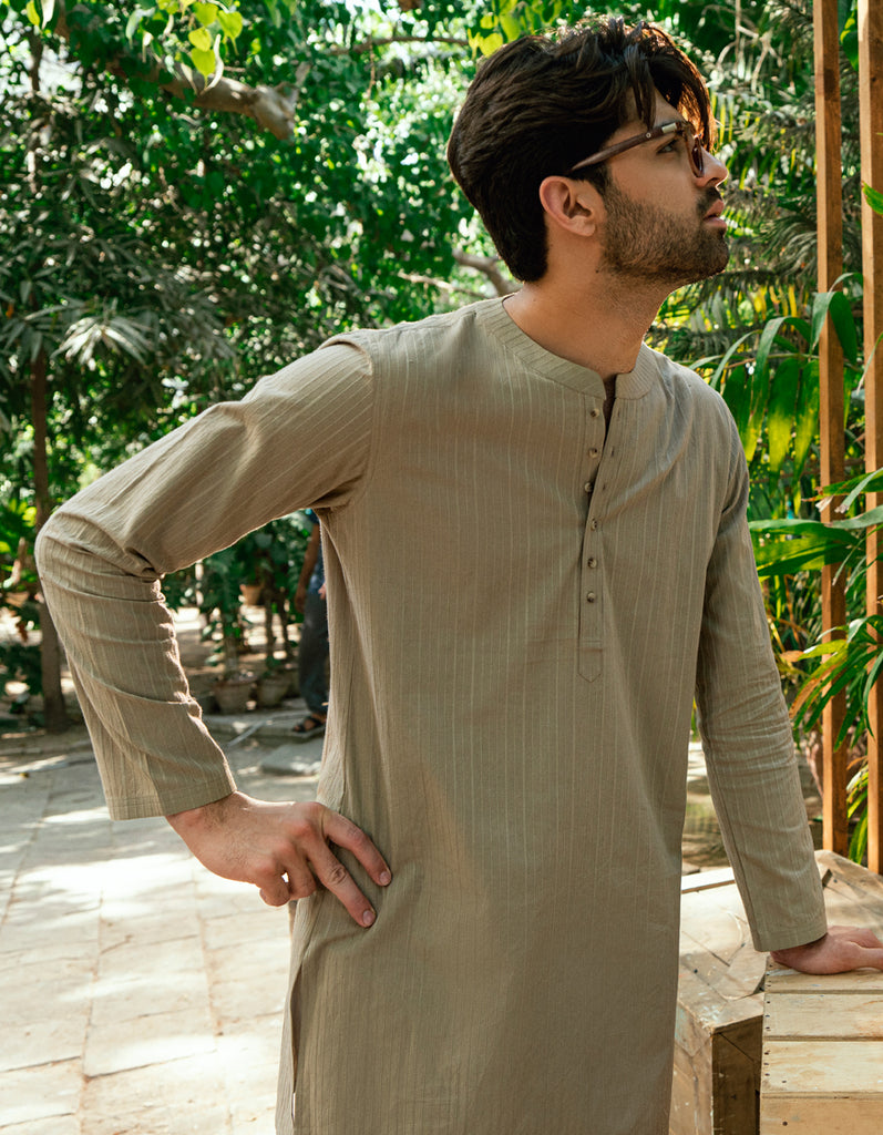 This beige bunnat cotton casual short kurta combines classic style with modern simplicity. Featuring a comfortable thigh-length cut, it’s designed for easy, everyday wear.