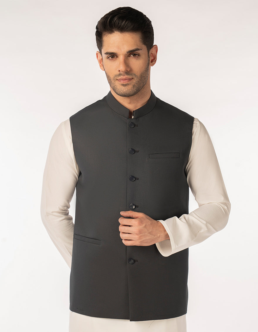 CHARCOAL SUITING WAISTCOAT | JJVC-A-48248/S25/JJ10131-PN