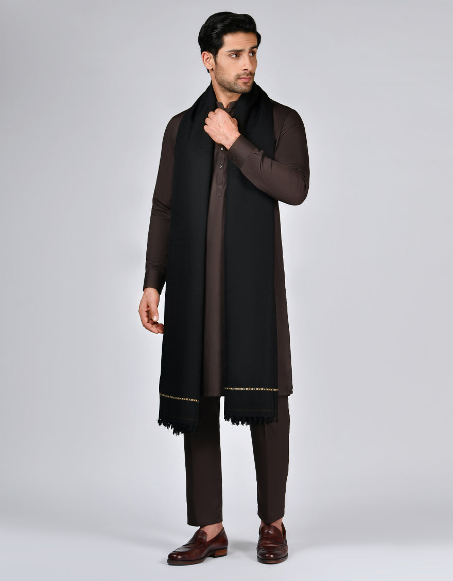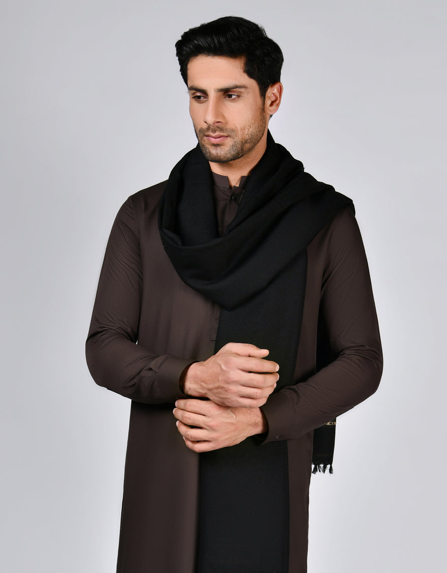 BLACK ACRYLIC SHAWL | JJID-SHAWL-W-10857/S25/JJ10857/A