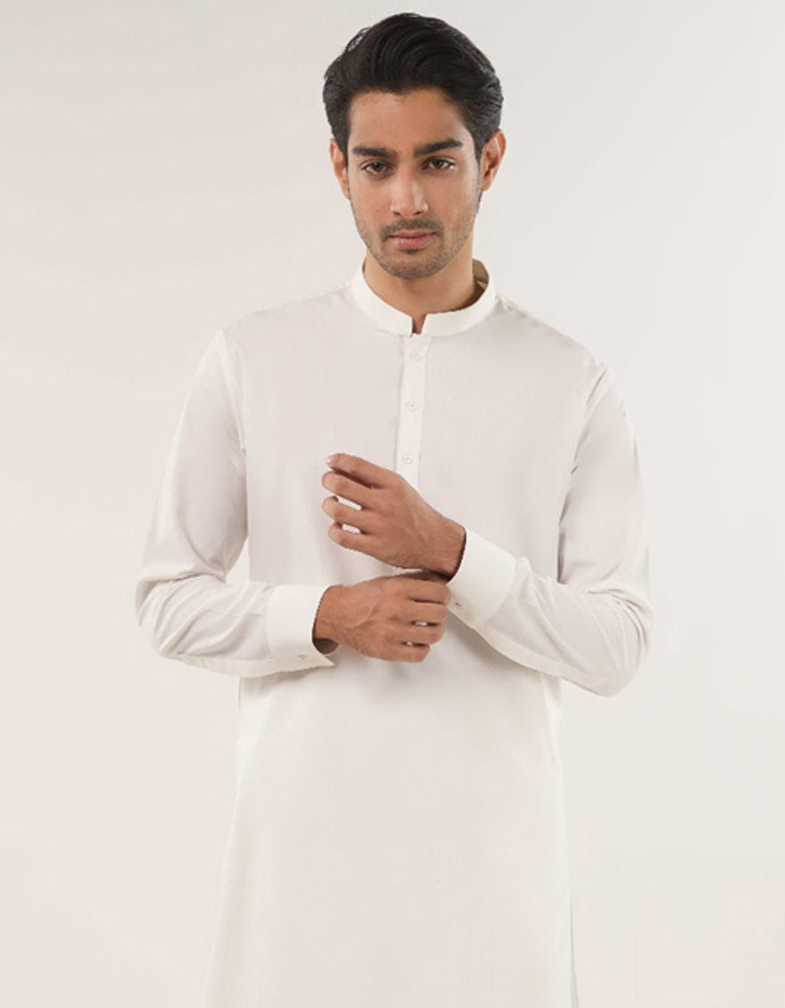 A neat and comfortable White Plain Kurta Trouser set designed for everyday wear. Its simple look makes it easy to style for casual gatherings or regular use