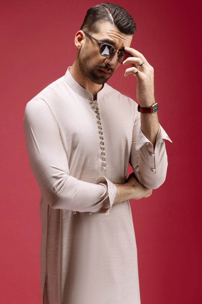 LIGHT BROWN COTTON KURTA TROUSERS | CCMKT-S-39371-4/4 - DENMARK