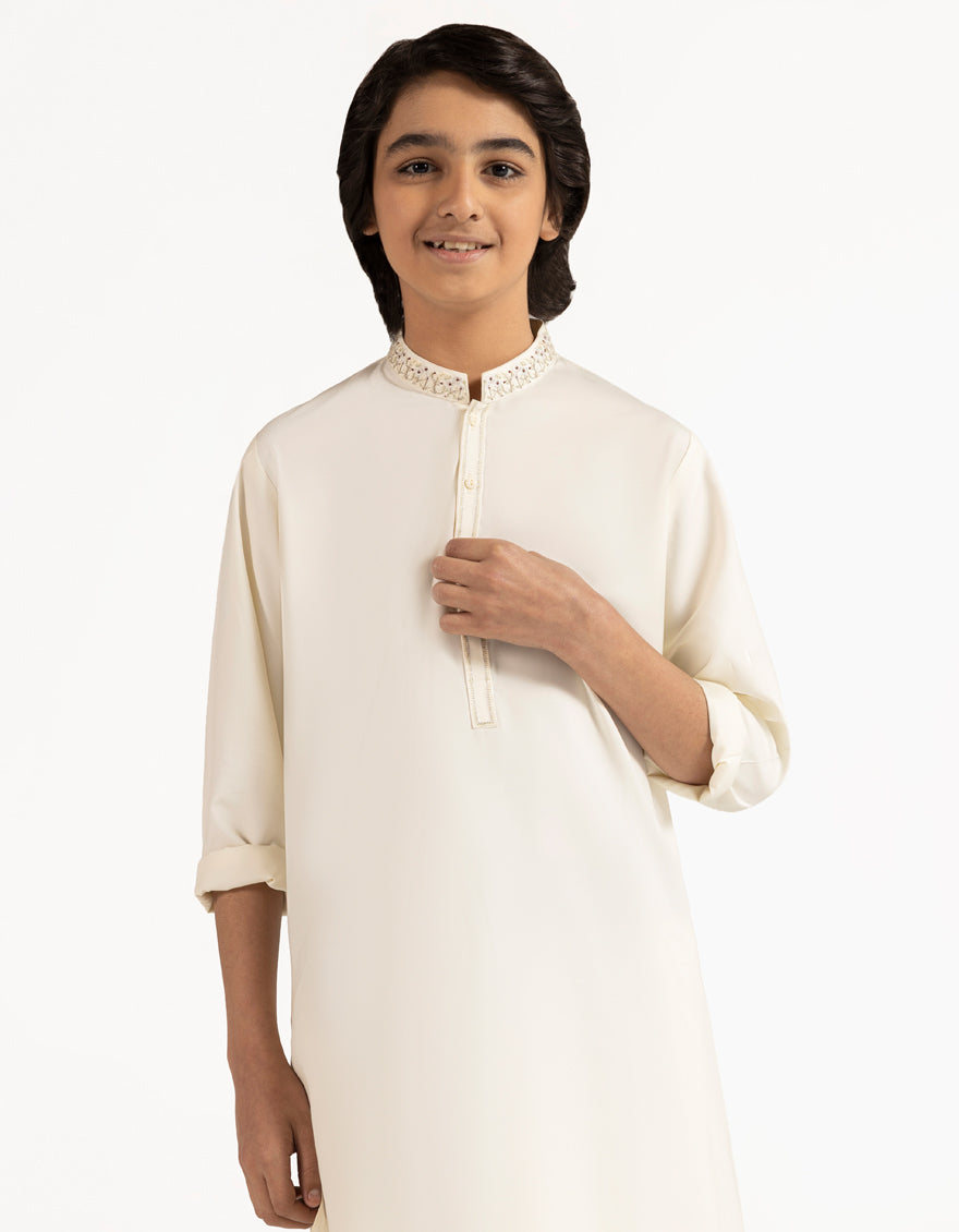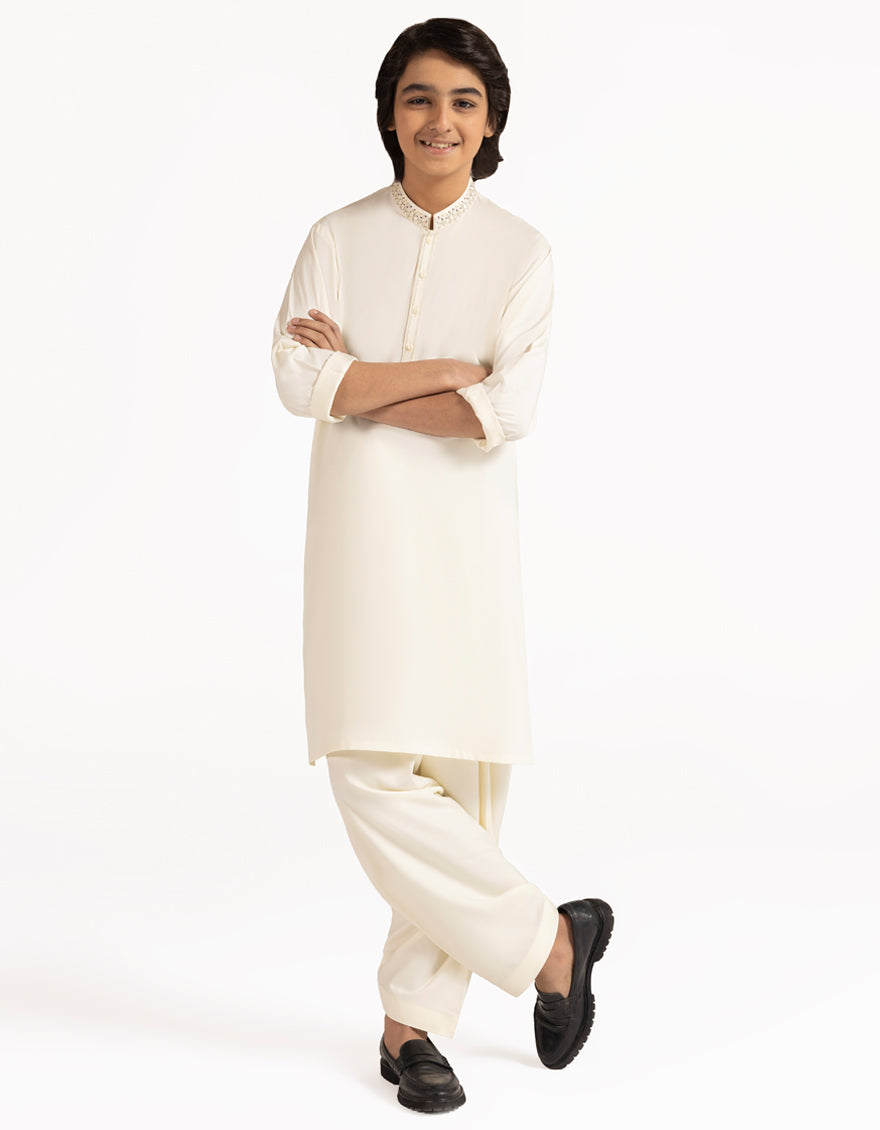 OFF WHITE BLENDED KAMEEZ SHALWAR | JCKS-A-39506/S26/JJ10246-SF