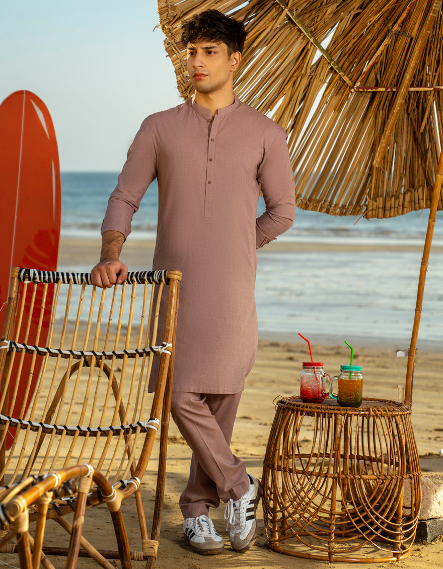 Designed with the young gentleman in mind, this Tea Pink Cotton Kurta Trouserexudes charm and sophistication. Its classic yet stylish look offers versatility, perfect for both casual and formal occasions.