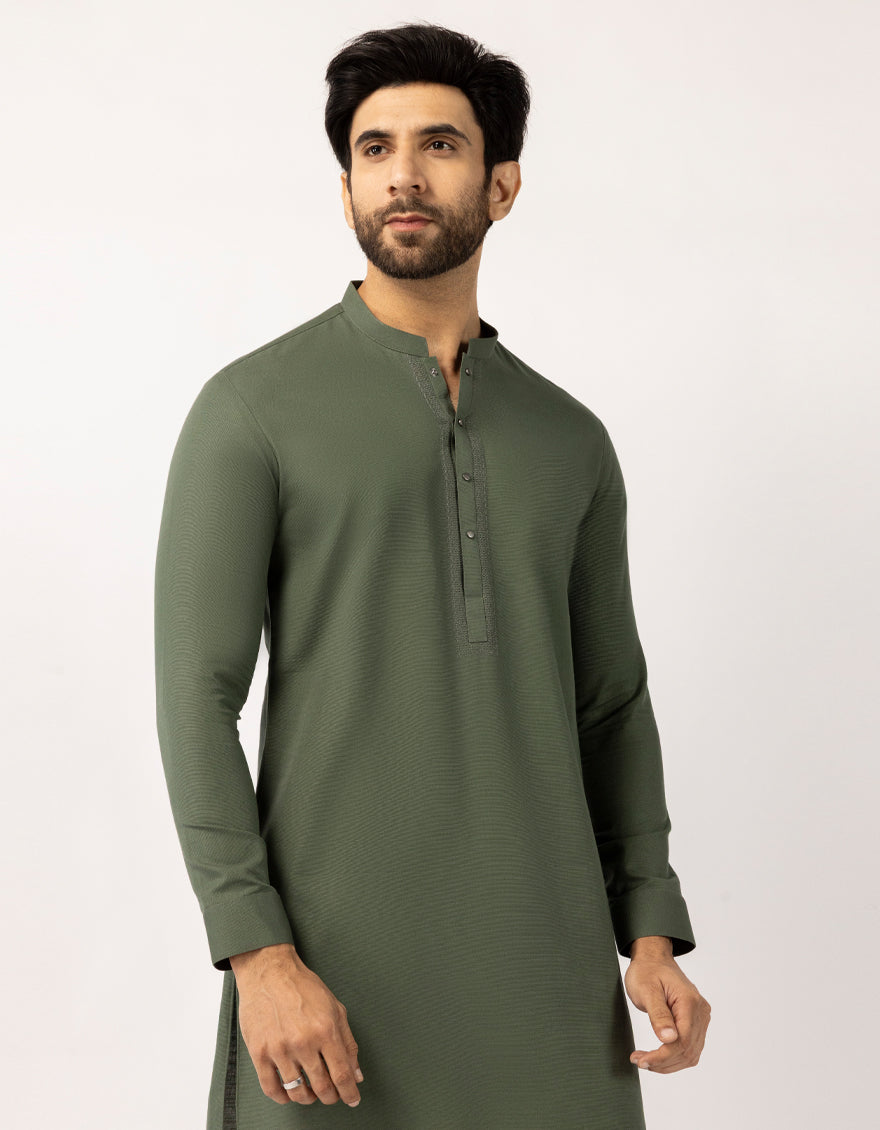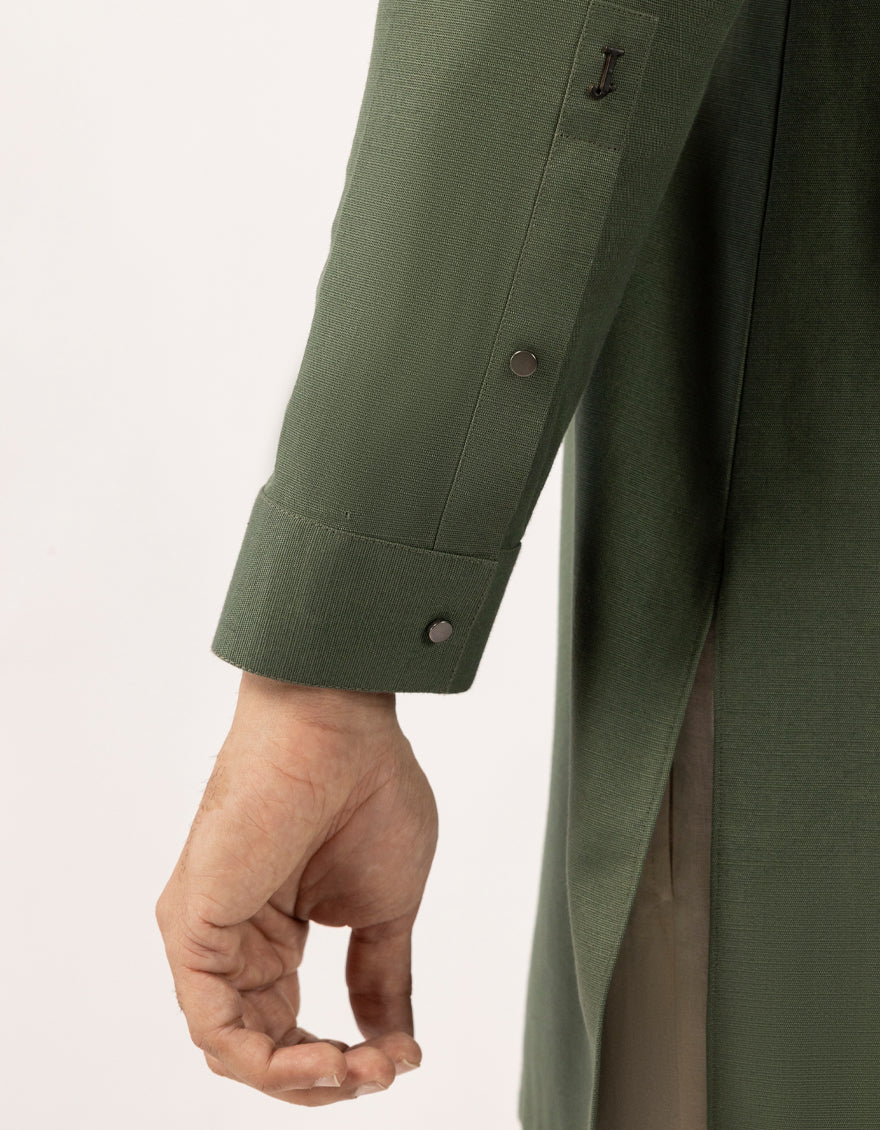 GREEN COTTON THIGH LENGTH KURTA | JJTHLK-W-90553/S25/JJ10450-SF