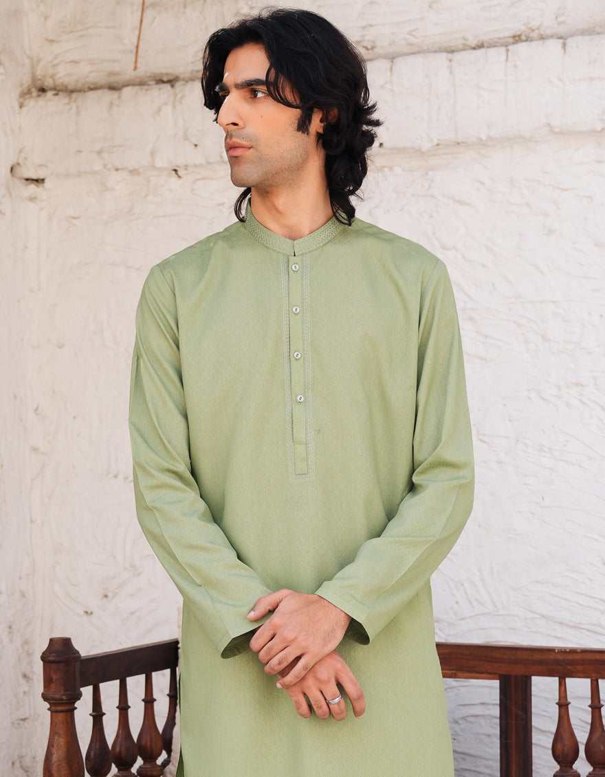 Upgrade your look with this Green Blended Semi-Formal Kurta, which mixes traditional and modern styles for a classy yet comfortable outfit.