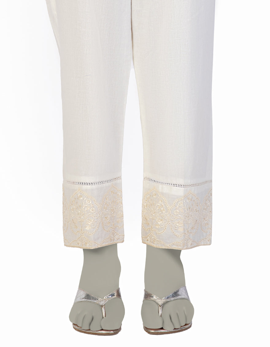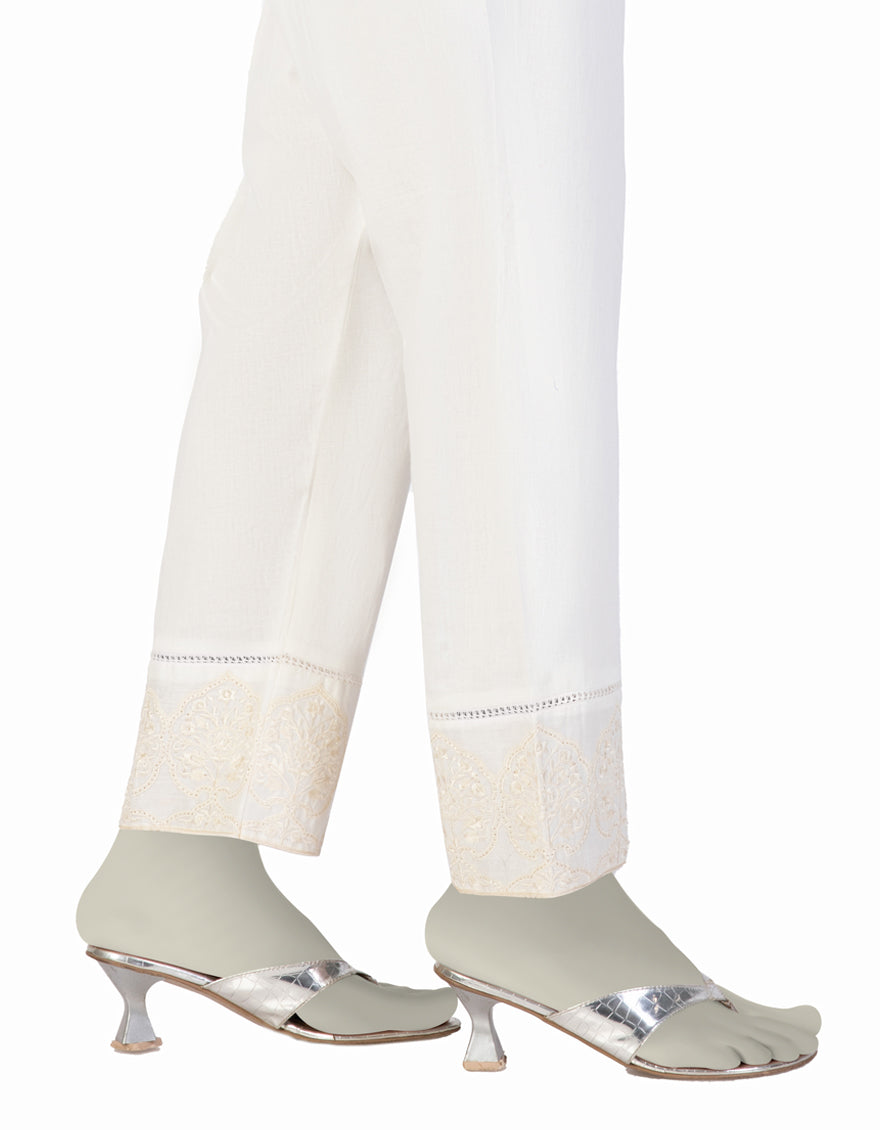 Off White Lawn Embroidered Trousers
