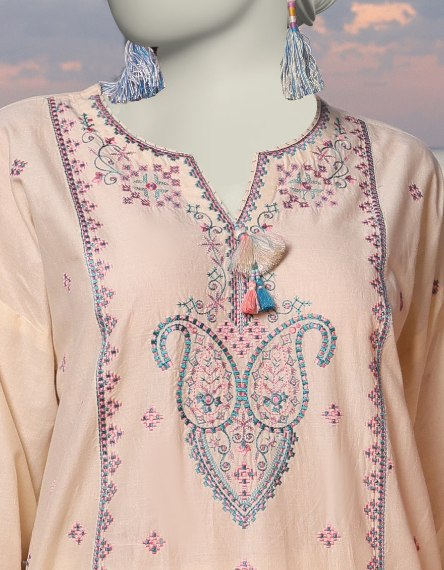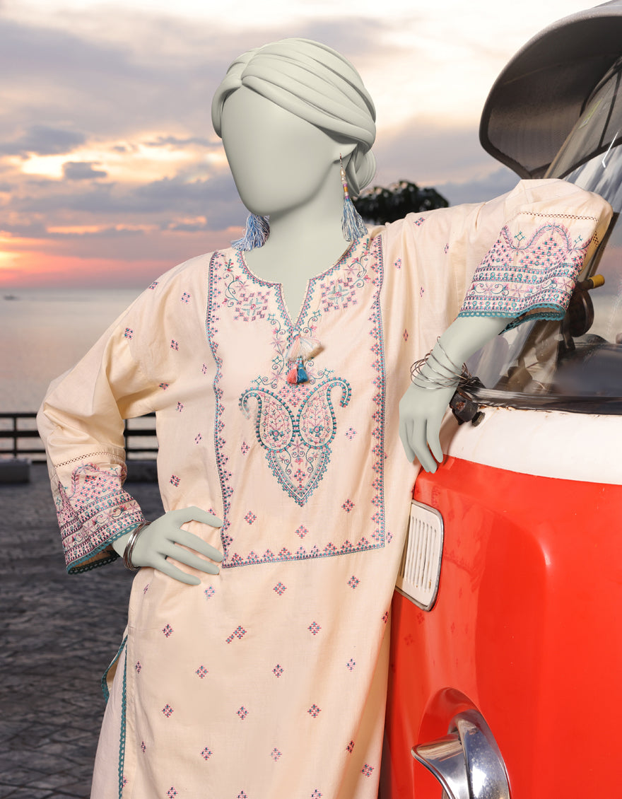 OFF WHITE LAWN KURTI | JJLK-S-JSS-25-341 FB/DOCHI-01
