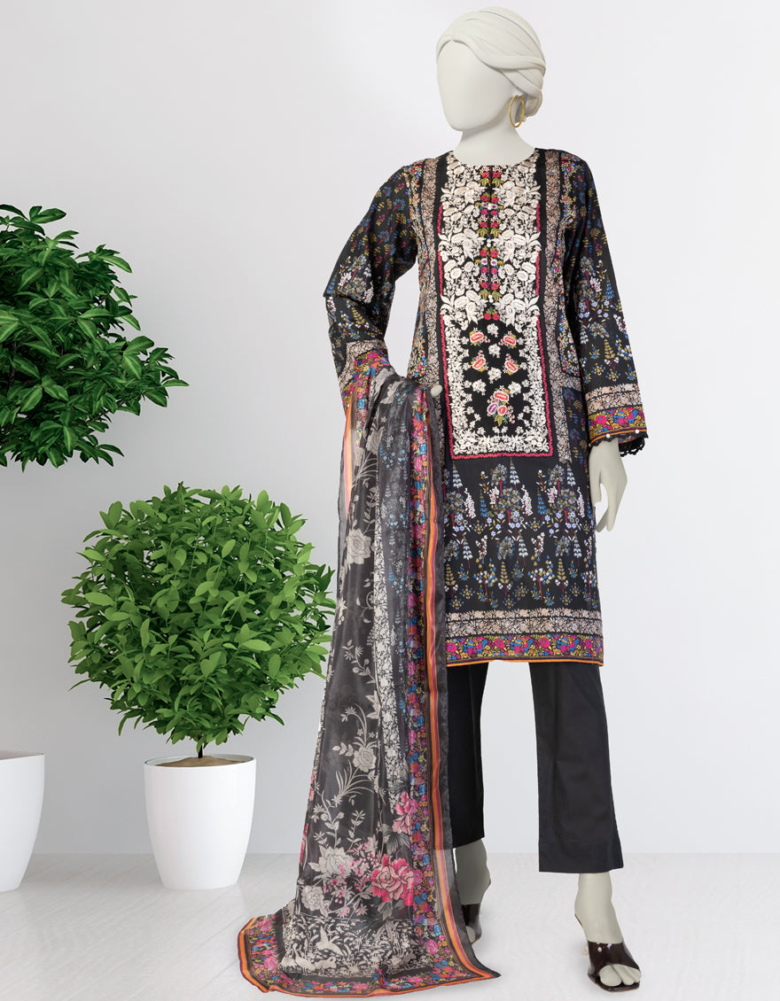BLACK LAWN 3PC STITCHED | JLAWN-S-25-142/S GARA GRACE-B-3