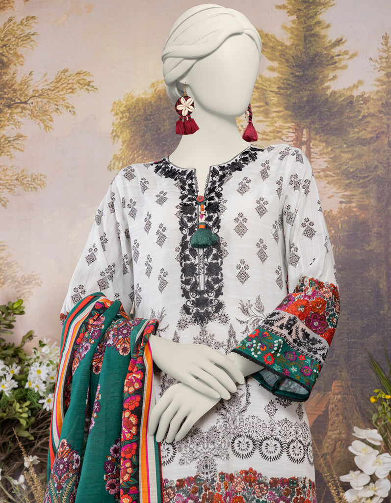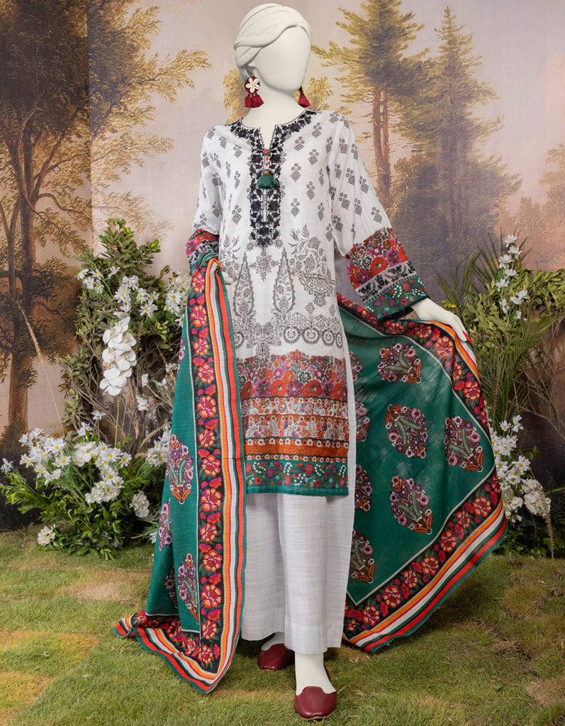 WHITE KHADDAR 3PC STITCHED | JJPW-S-JPW-24-012 FB