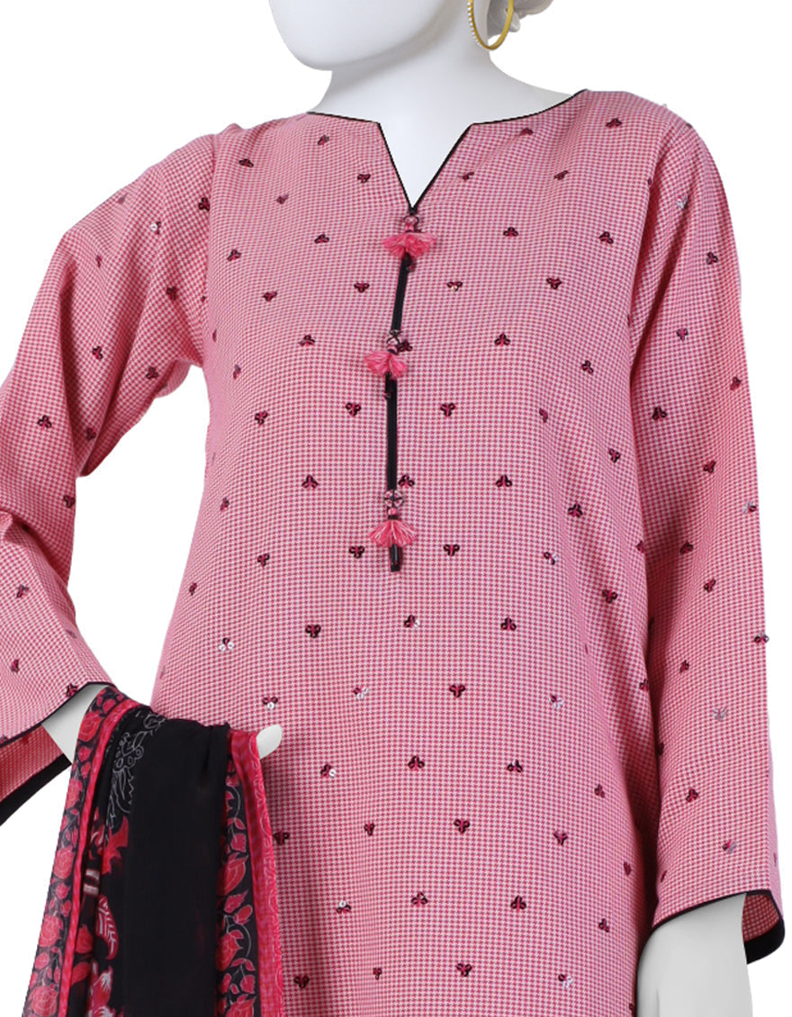 Collection: Embroidered Dyed Dobby Shirt & Printed Chiffon Dupatta With Trouser