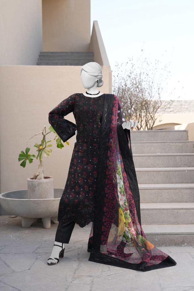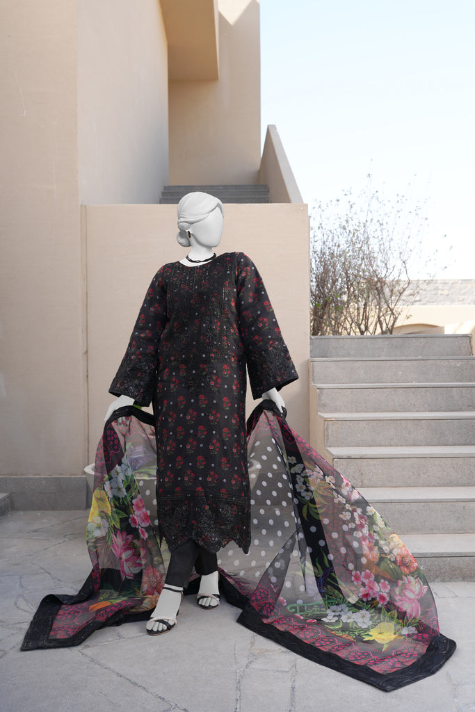 BLACK ORGANZA 3PC STITCHED | PJPWS-990829