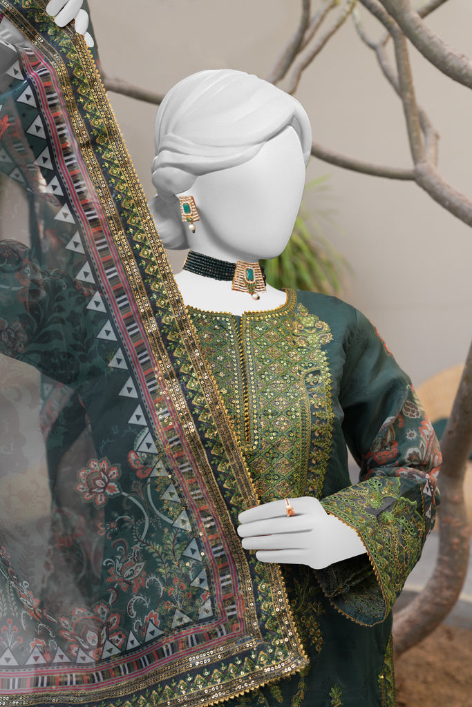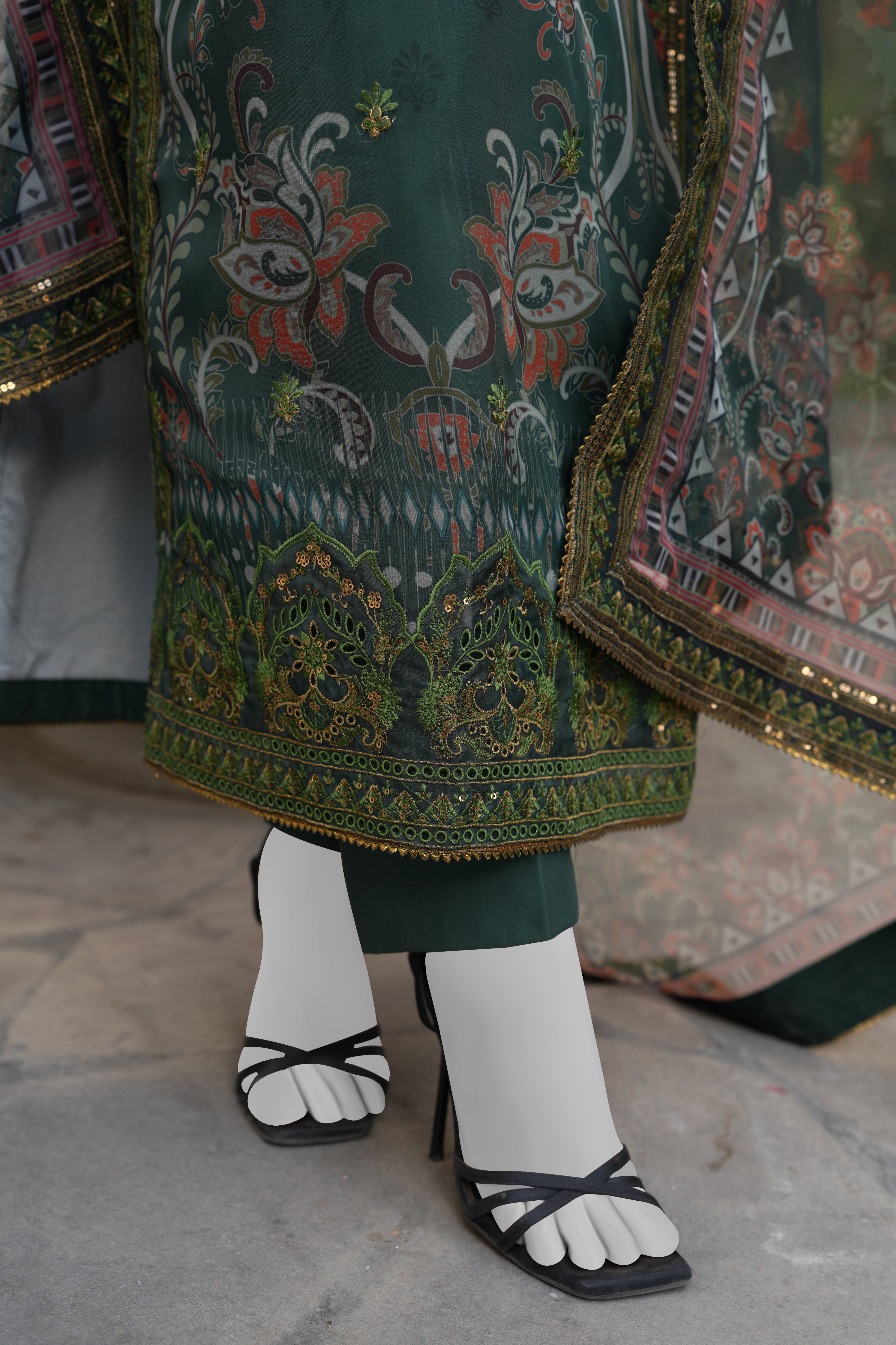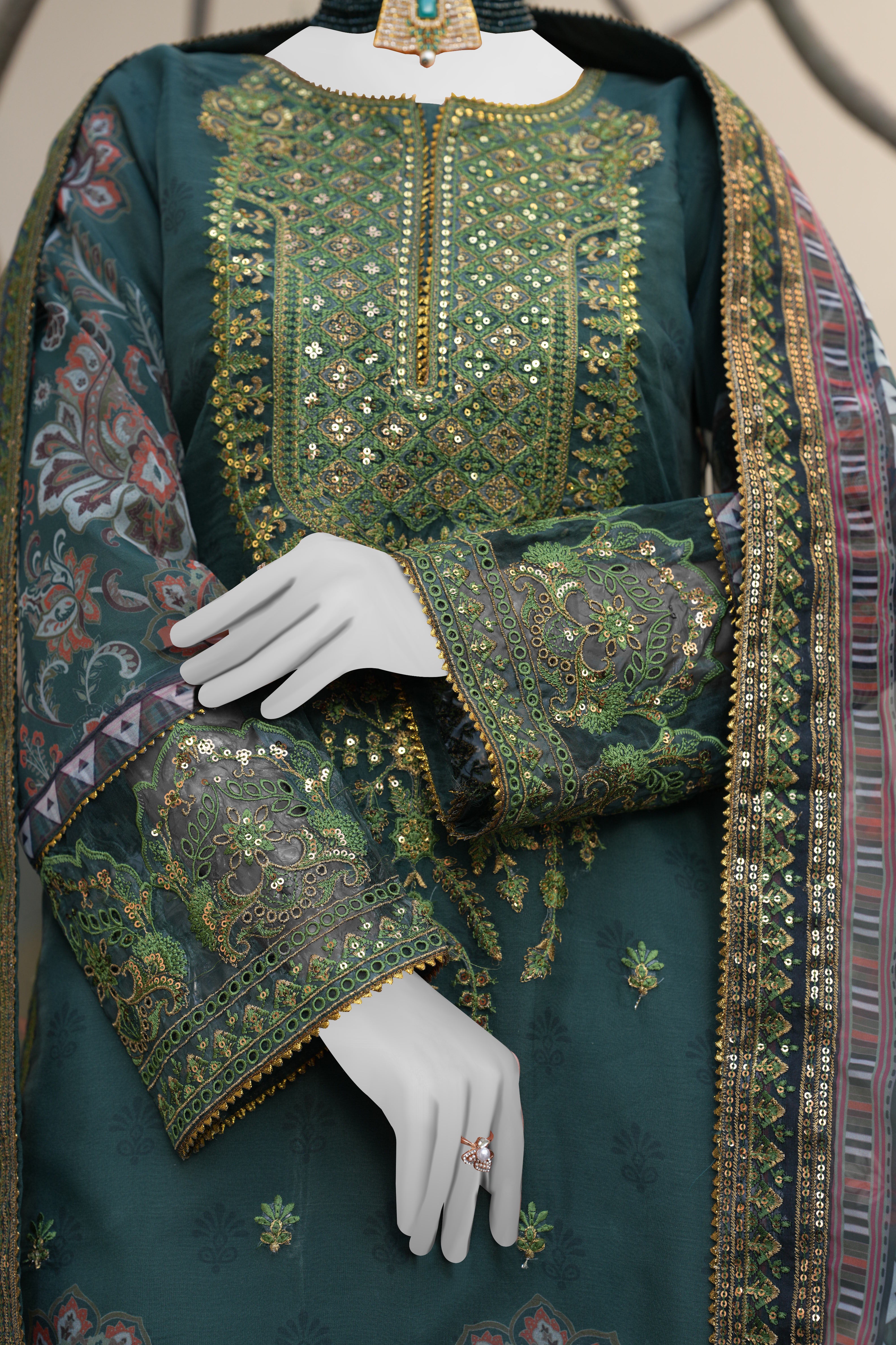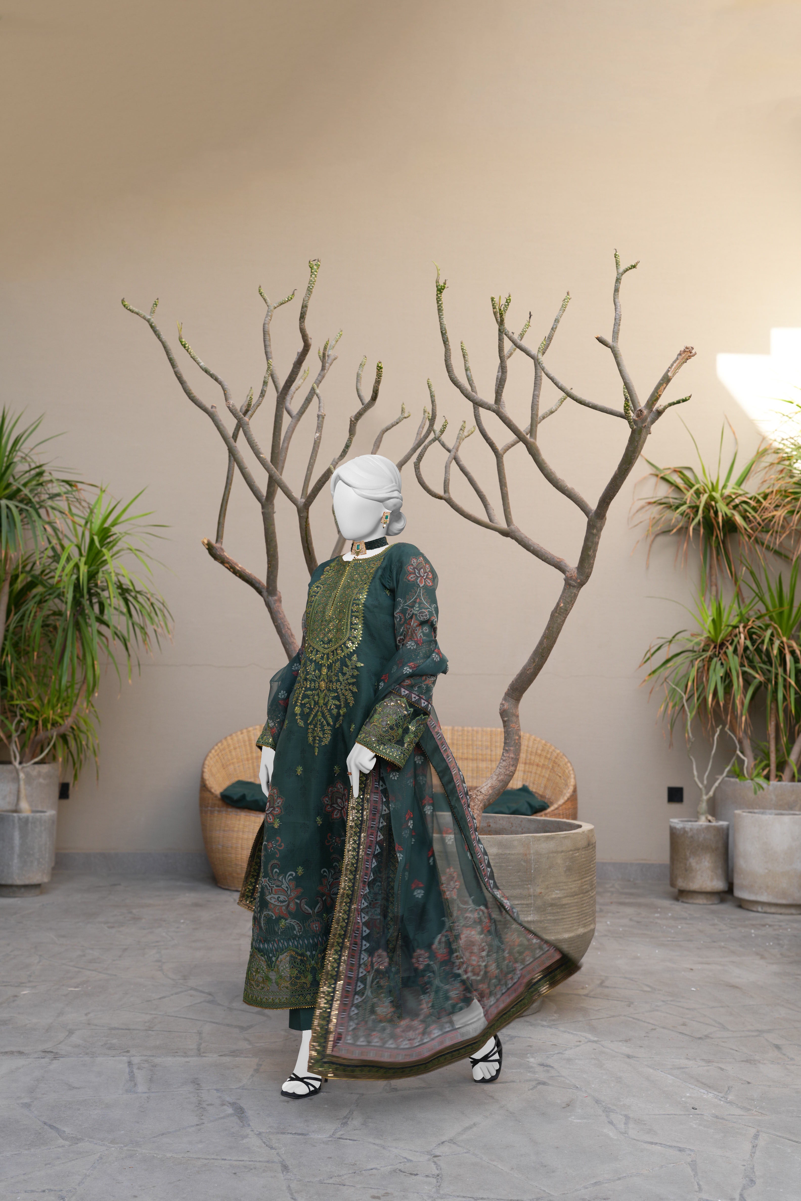 GREEN ORGANZA 3PC STITCHED | PJPWS-990830