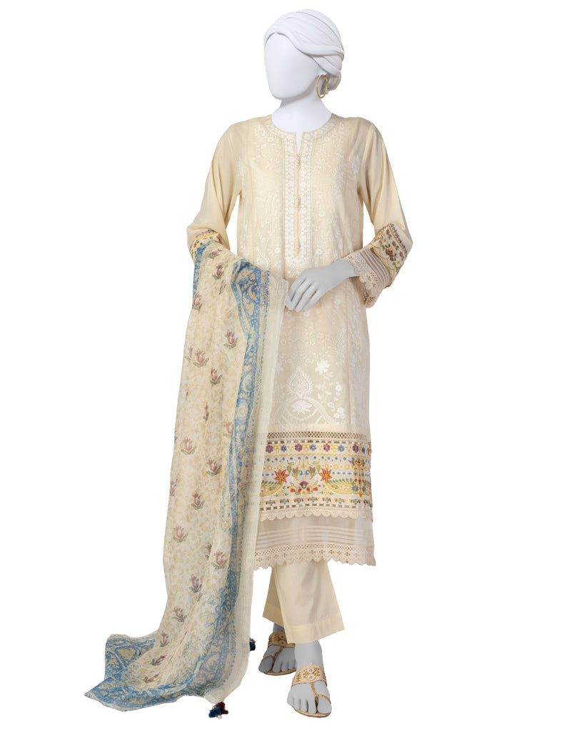 OFF WHITE LAWN 3PC STITCHED | JLAWN-S-25-822/S LUXE-A-02