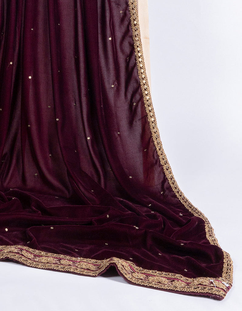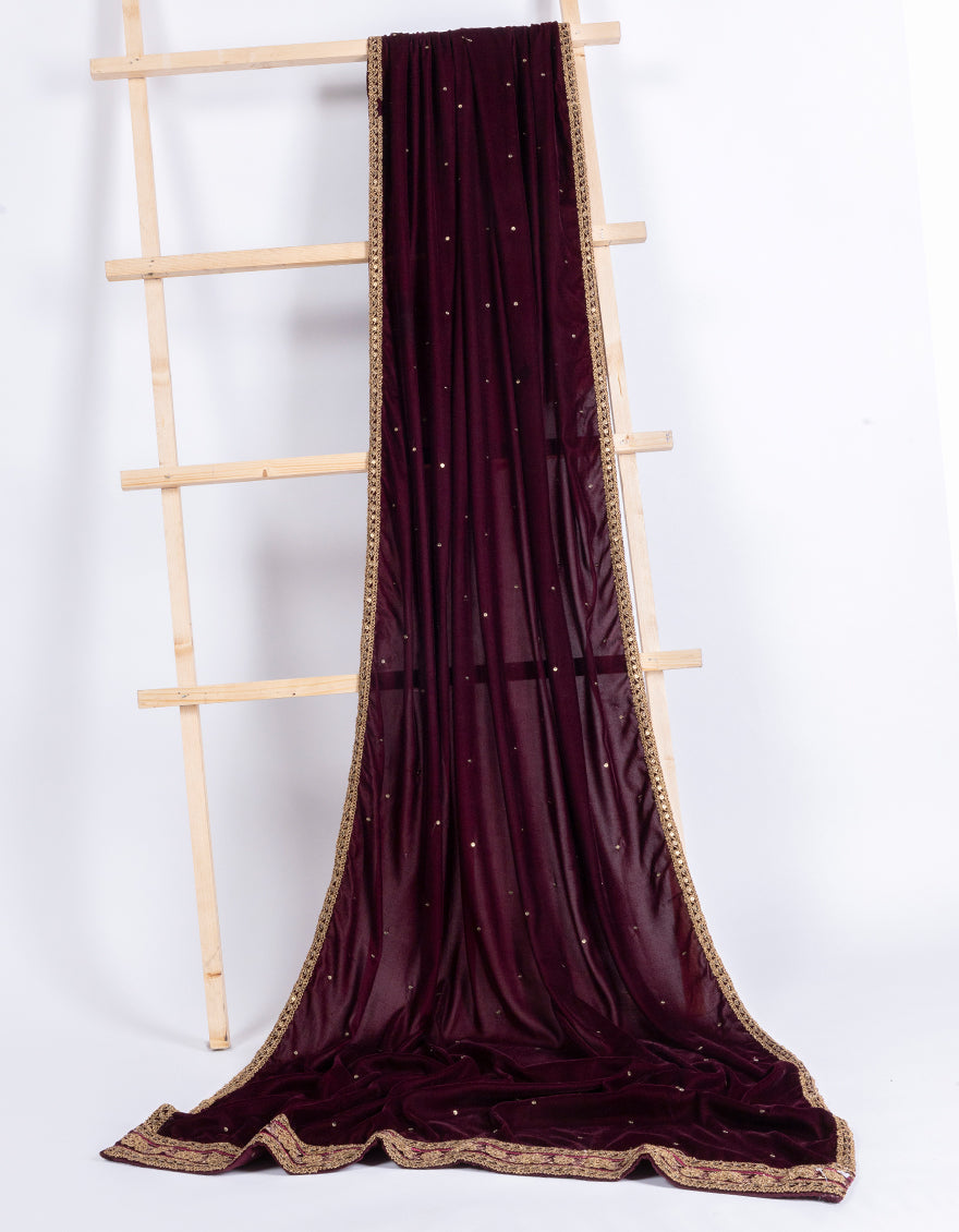 MAROON VELVET SHAWL | JSH-JSHW-24-2674 FB/
