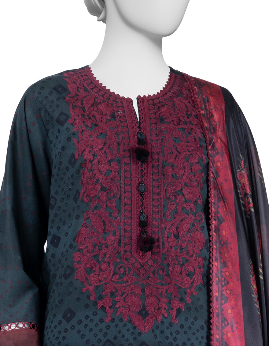 Embroidered Digital Printed Lawn Shirt: 3 Meters