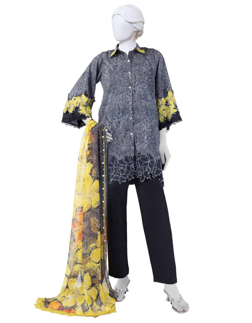 BLACK LAWN 3PC UNSTITCHED | JLAWN-S-25-3272 KANTHA KAHANI-8