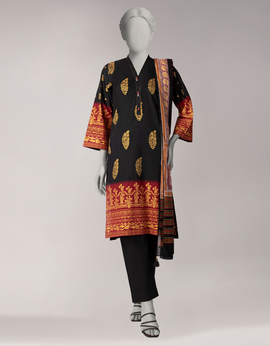 BLACK LAWN 3PC UNSTITCHED | JLAWN-S-26-1089 GOLD JAMDANI-1