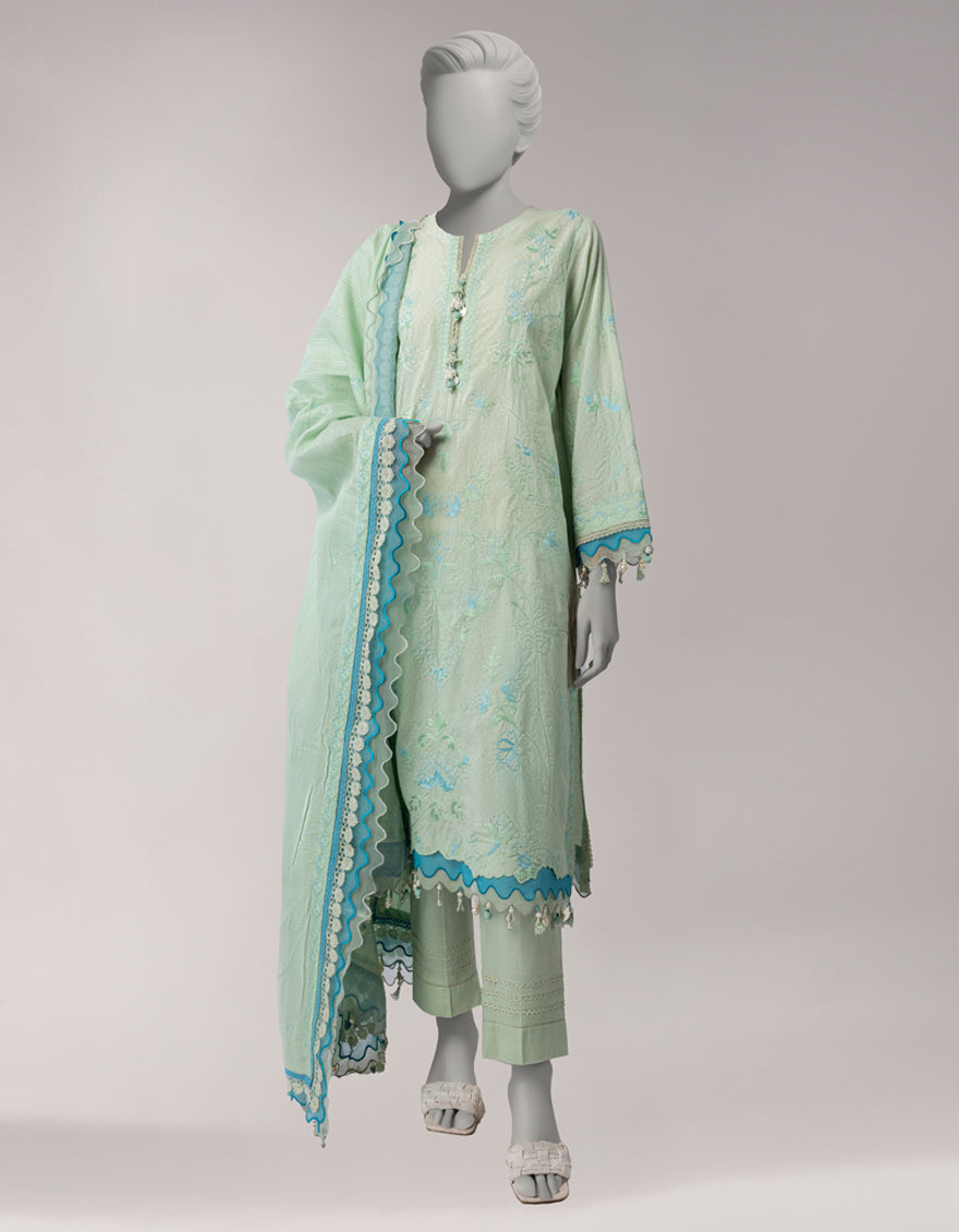 GREEN DORIA 3PC UNSTITCHED | JLAWN-S-26-3834 ZARDOZI-04