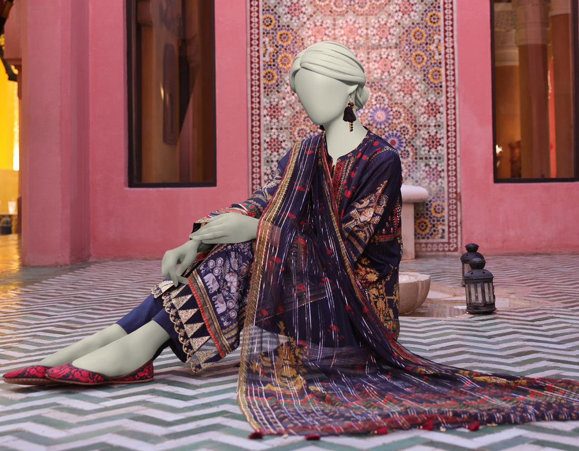 BLUE DOBBY 3PC UNSTITCHED | JLAWN-S-25-810 ROYAL