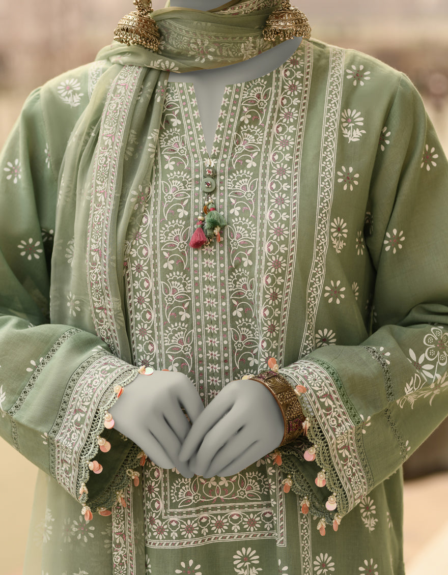 GREEN LAWN 3PC UNSTITCHED | JLAWN-S-25-817-SHADO